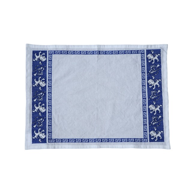 幾何学模様のRAIMON(雷文)柄が目を引くクロスは、ランチョンマットとしてはもちろん、インテリア、お出掛けに持ち歩く1枚としてもおすすめです。 ホワイトとブルーのさわやかな色合いは季節感を選ばず、一年中お使いいただけます。 W38.5cm H28cm LINEN 65% COTTON 35%
