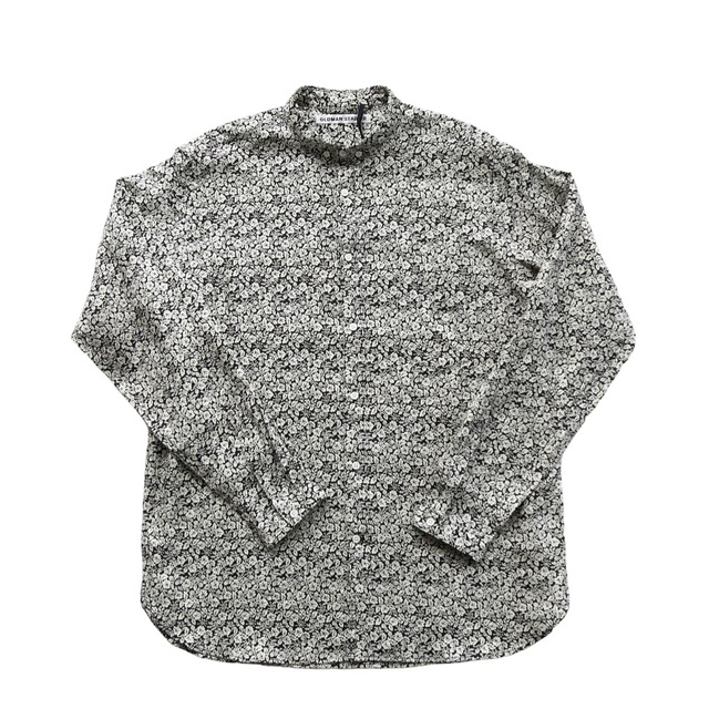 Size 38 着丈78.5 身幅49 肩幅50 袖丈65 首周り40cm LINEN 100% 使うほどに味の出るリネン生地を使用したバンドカラーシャツ。 ゴージャスな花柄が上品な印象に。さらりとした質感なのでTシャツの上に羽織としてもご着用いただけます。 稀少なデザインの1着いかがですか。