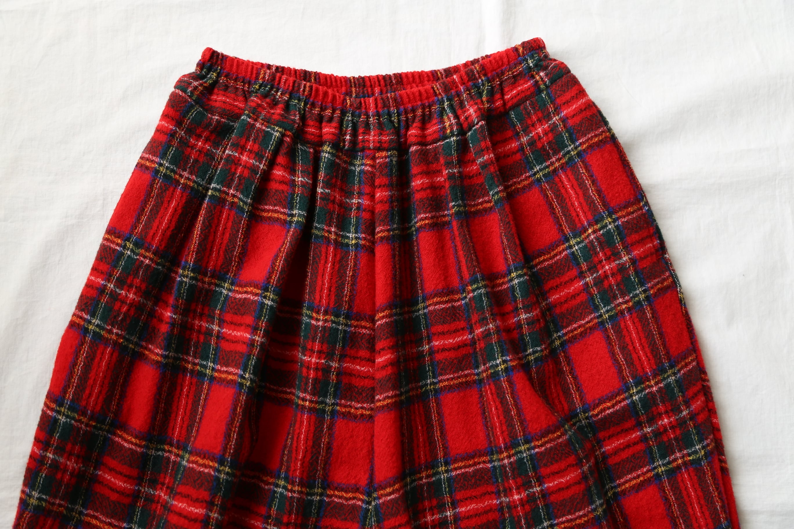 軽くて暖かい生地感と柔らかなシルエットが特徴的です。ウエストはゴムでフリーサイズなのでリラックス感もありながら綺麗めにも着られ日常のコーディネートに大活躍です!秋冬はタイツを合わせてトップスはニットなどを合わせたりしても素敵ですね。