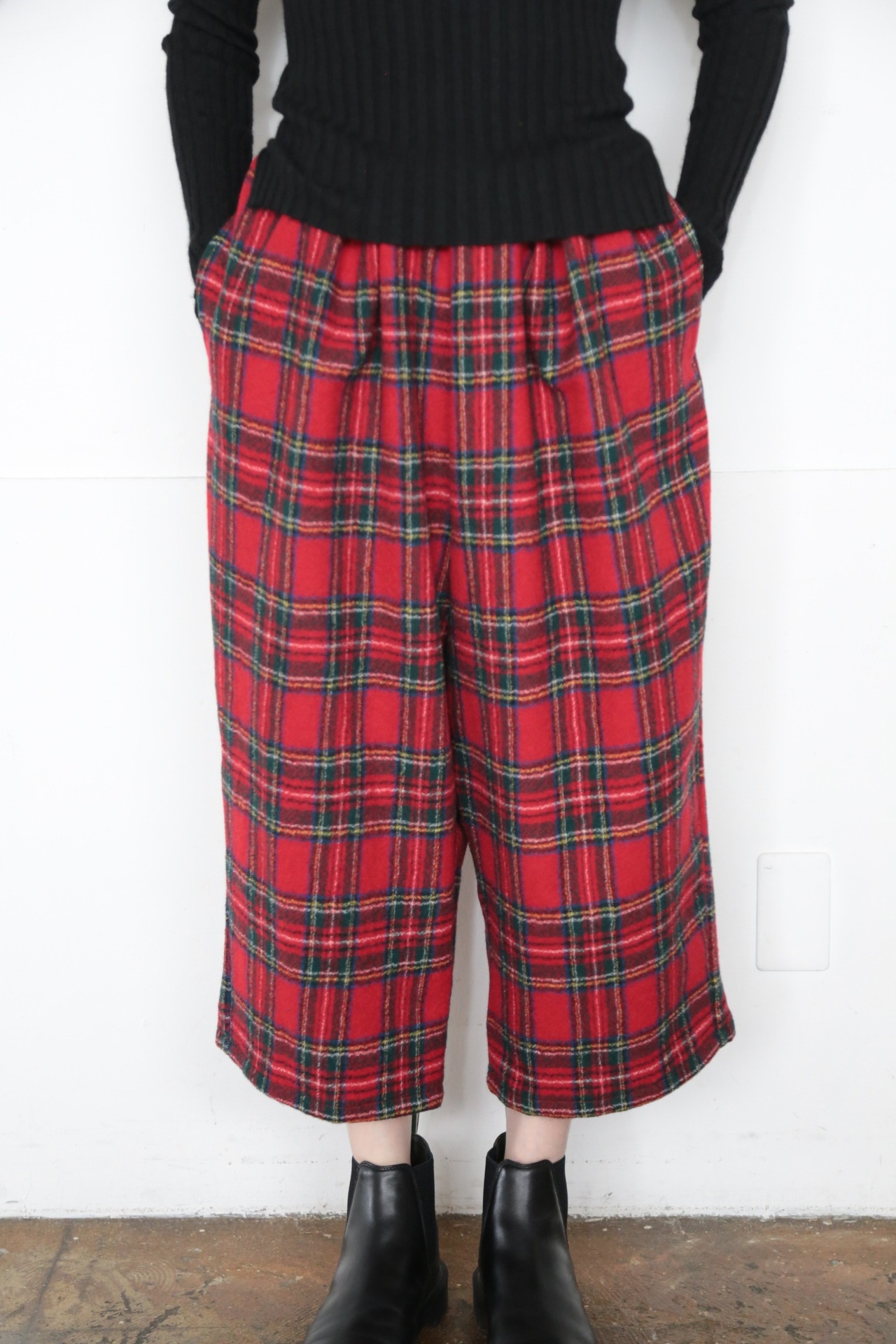 圧縮されたタータンチェックのウールが暖かなWOOL TARTAN CHECK GUM PANTS