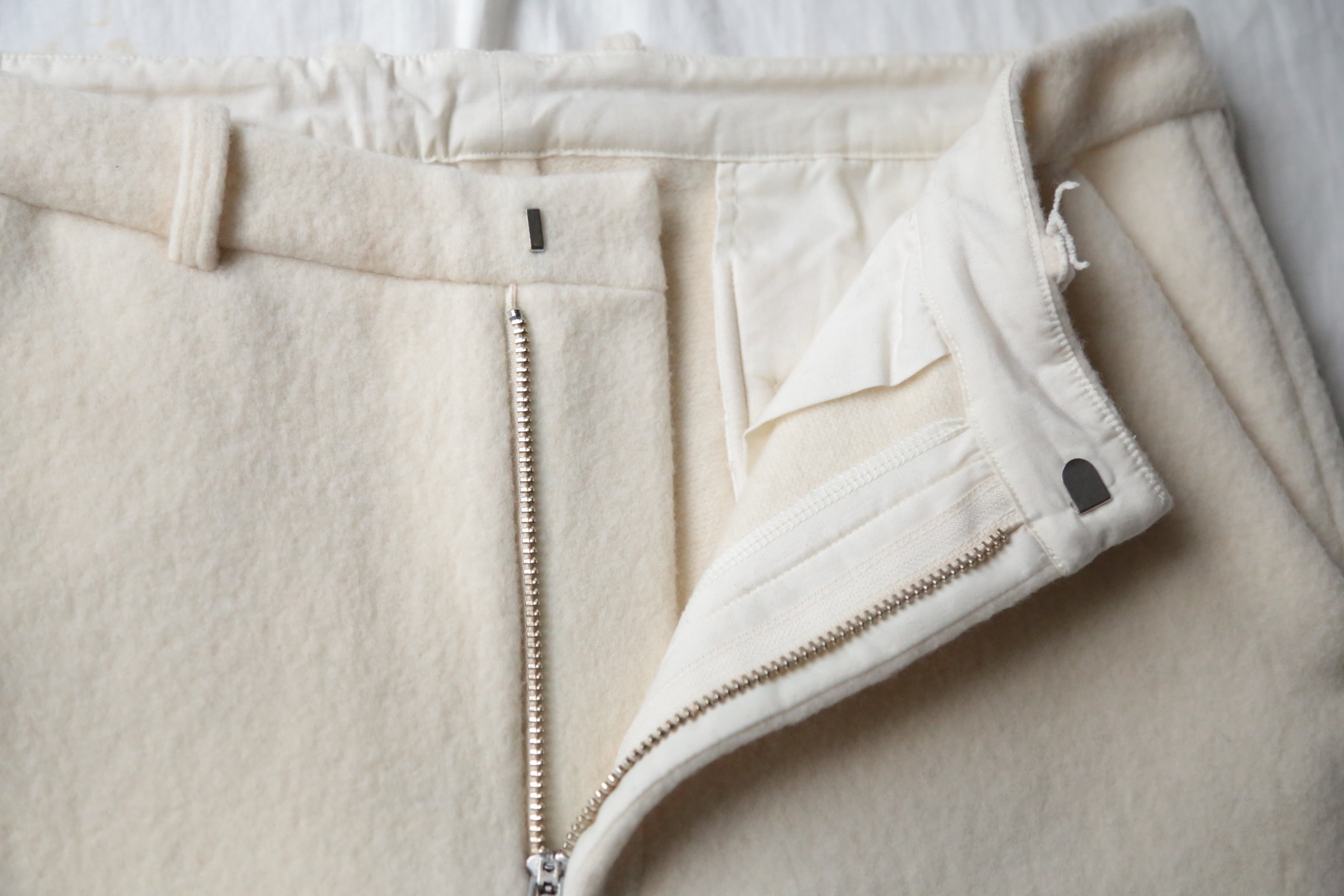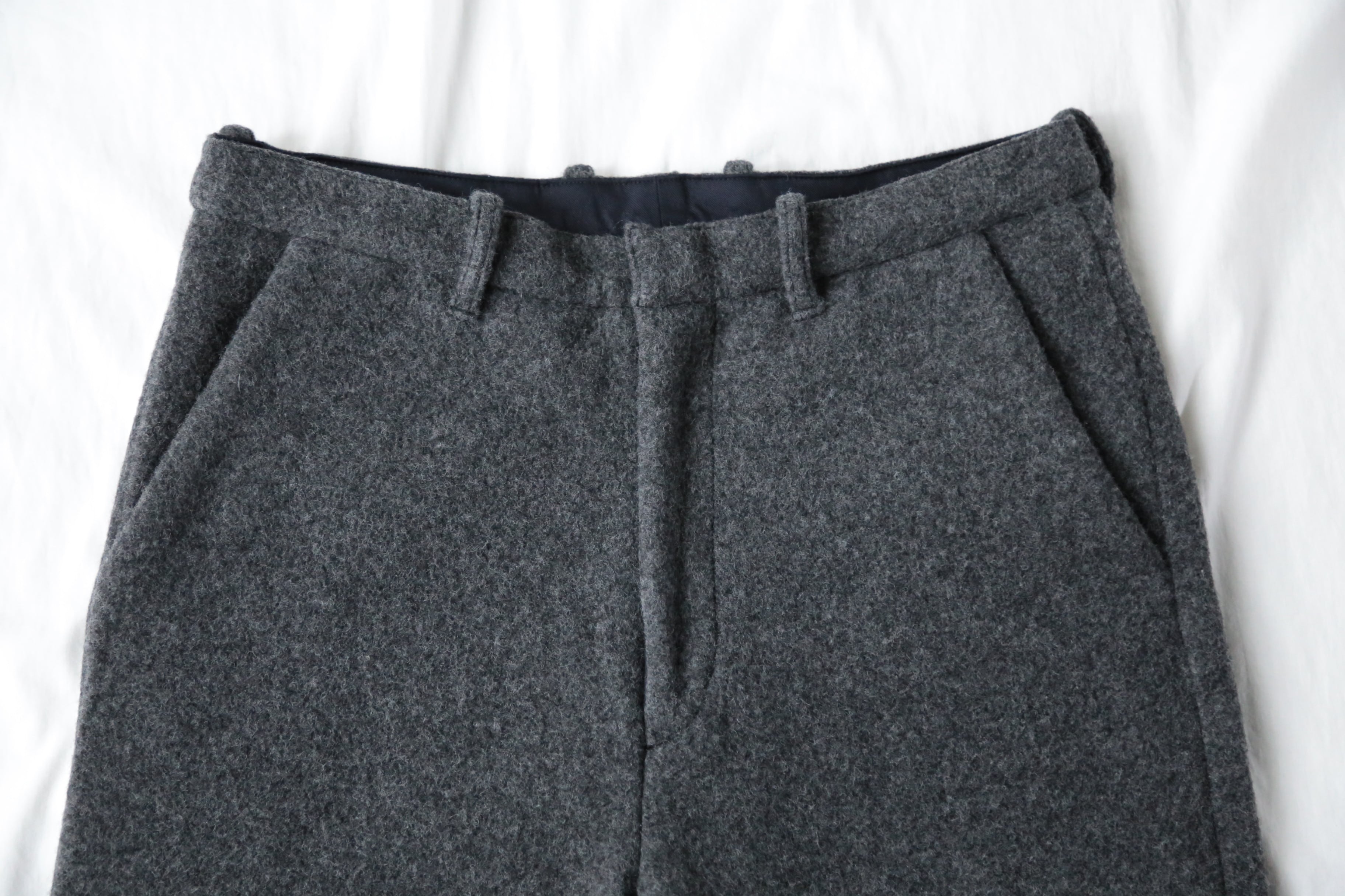 圧縮されたウールがとても暖かいWOOL FELT KNIT TAPERED PANTS。