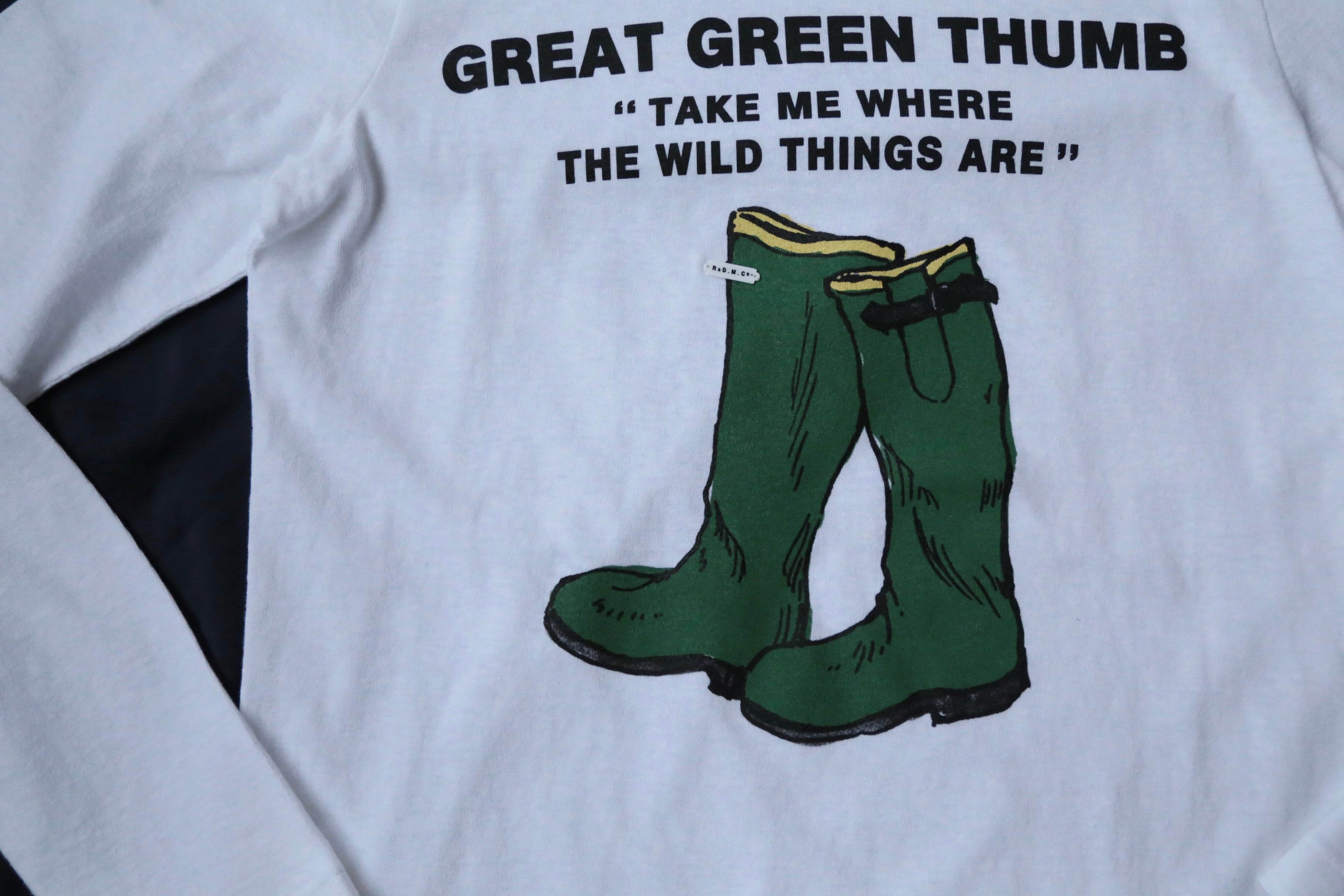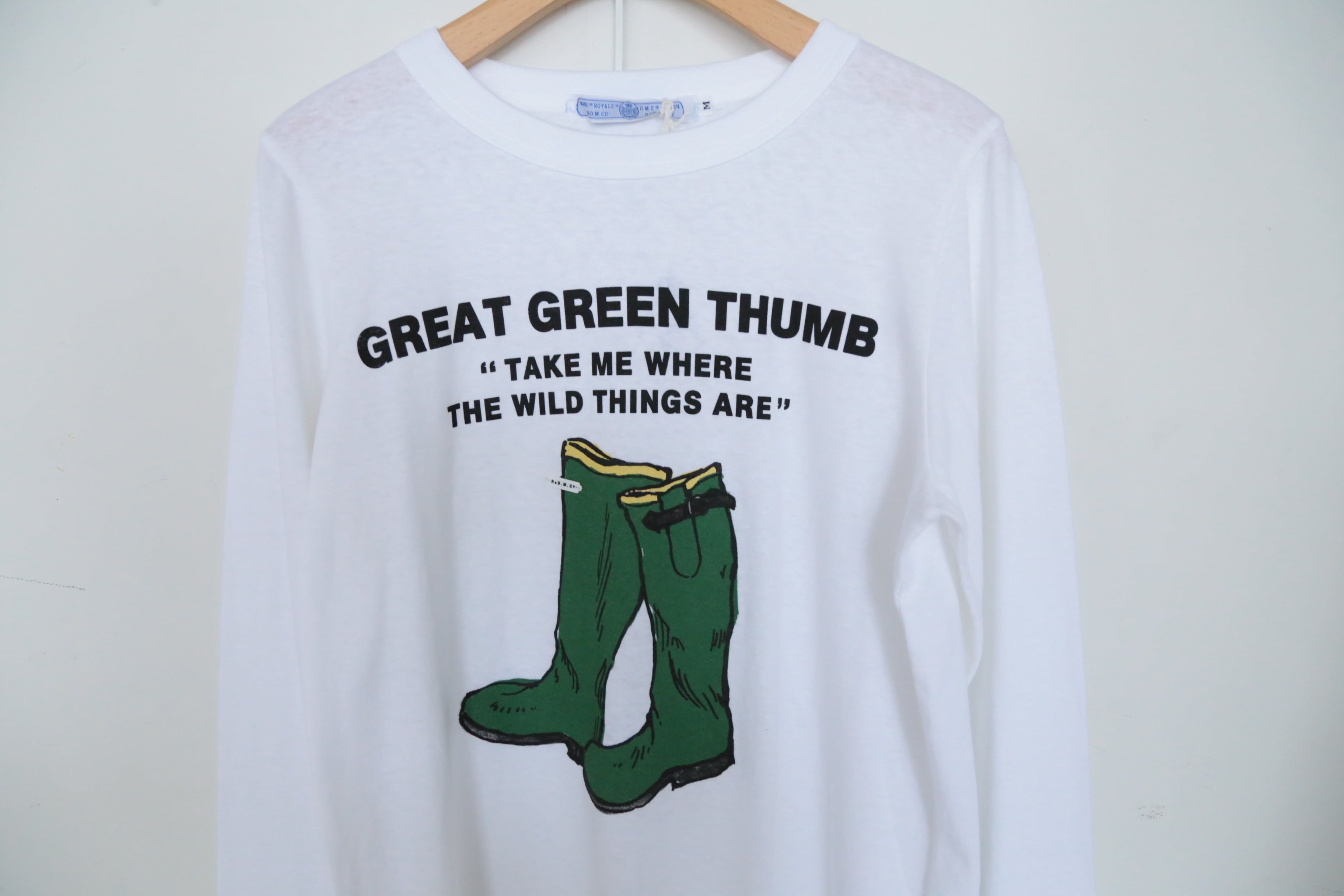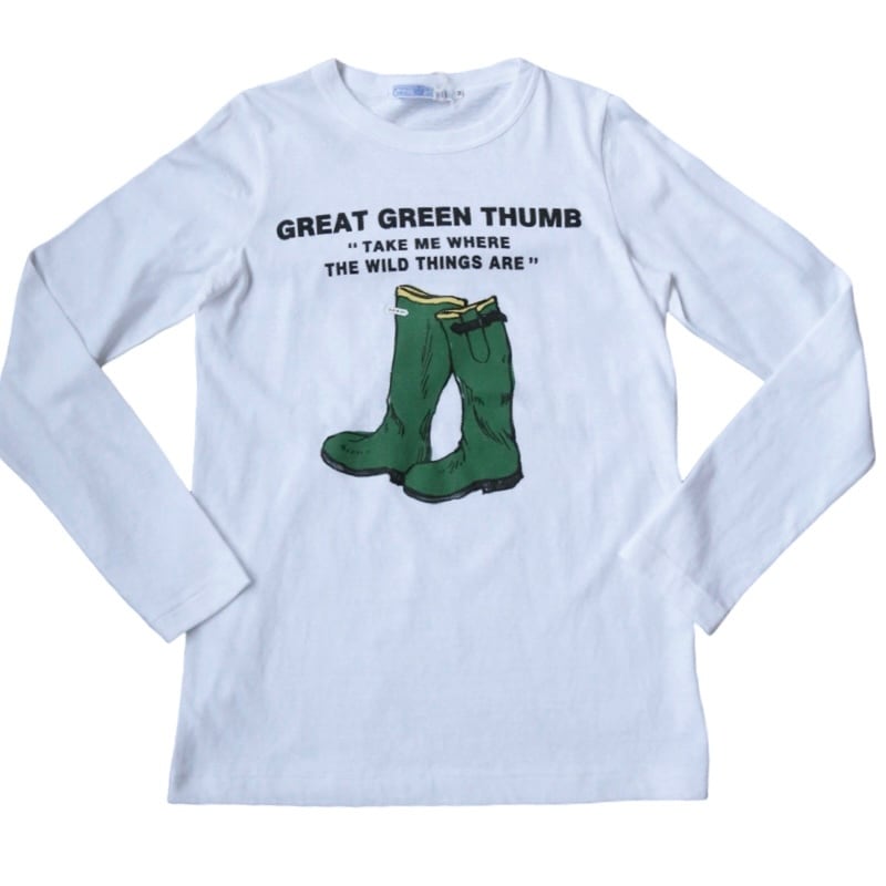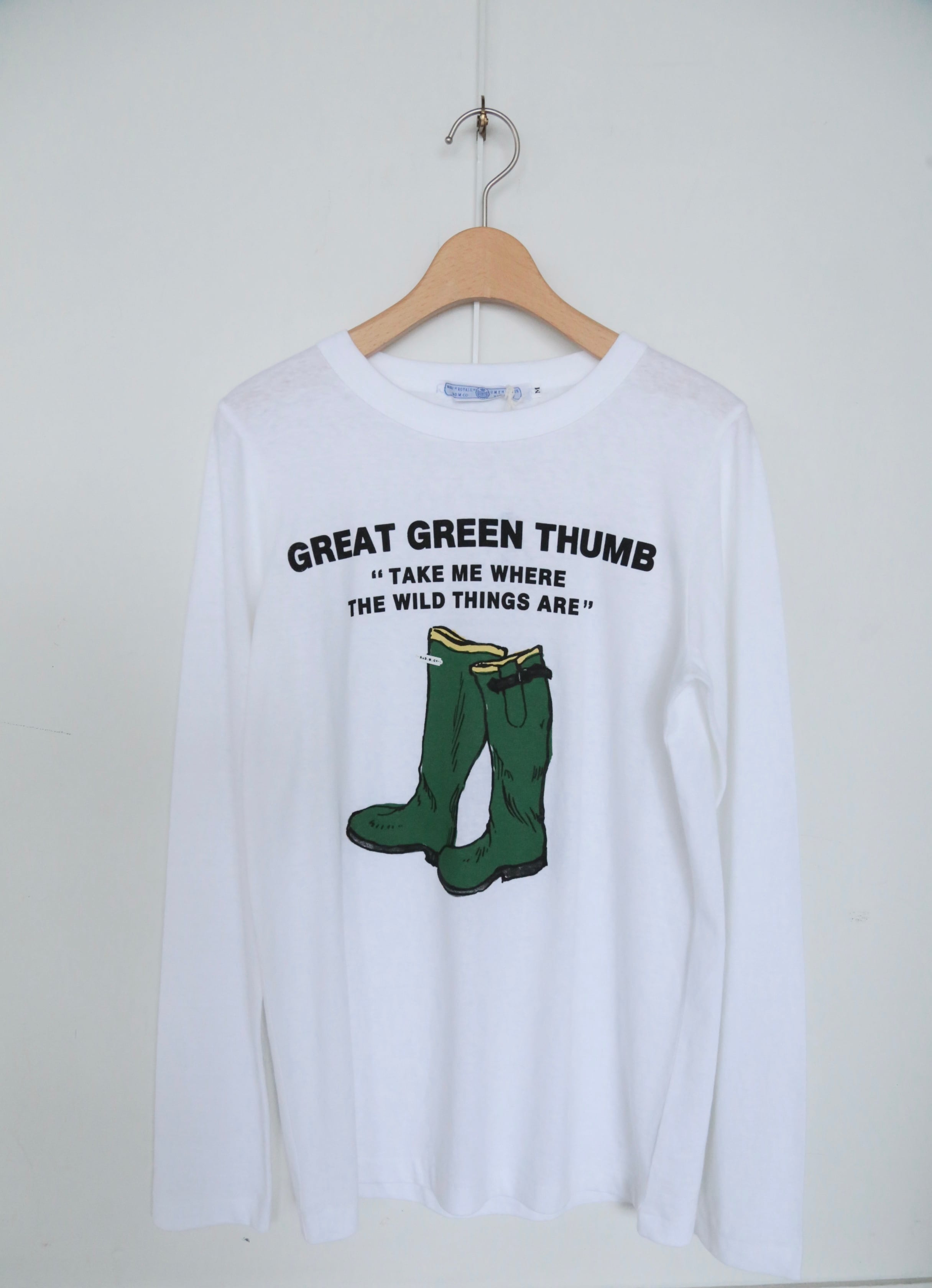 グリーンブーツをモチーフにした、魅力的なGREEN BOOT L/T SHIRTです。自然を感じさせるデザインがガーデニング好きにはたまらない一着!軽やかで通気性のある素材感はデニムはもちろん、タータンチェックのスカートなどのコーディネートでもバッチリ決まりますよ。おすすめです。