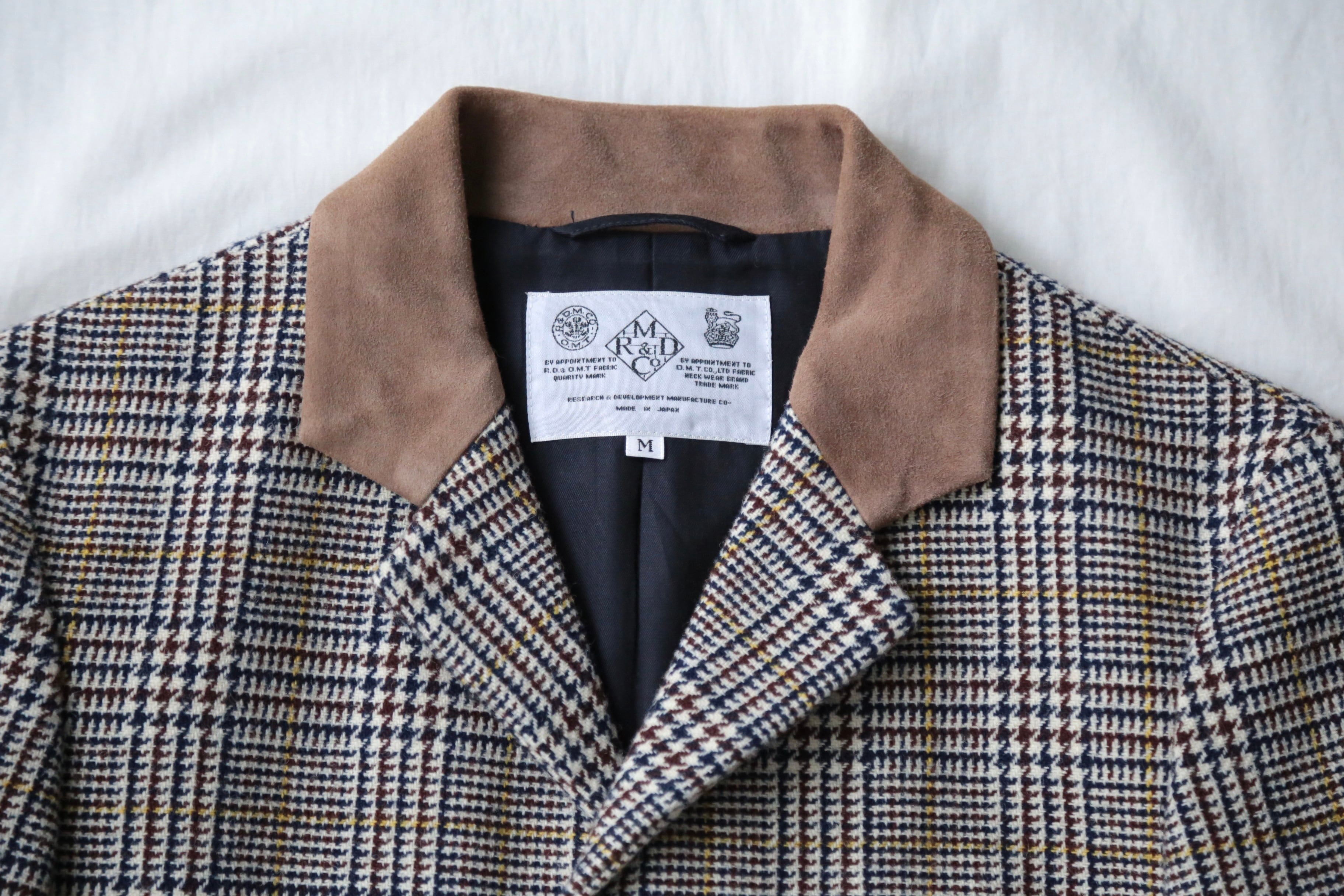グレンチェック柄がクラシックでありながら、襟とエルボーパッチにあしらわれたシープレザーが上品さを演出してくれるWOOL GLEN CHECK JACKET。