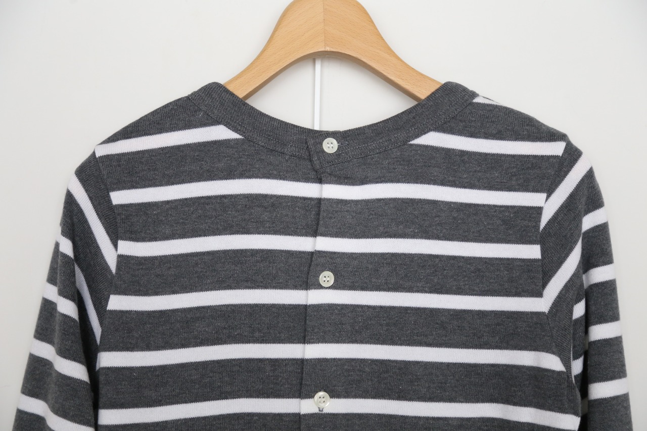 シンプルなデザインが合わせやすい裏起毛 BACK BUTTON BORDER CARDIGAN。