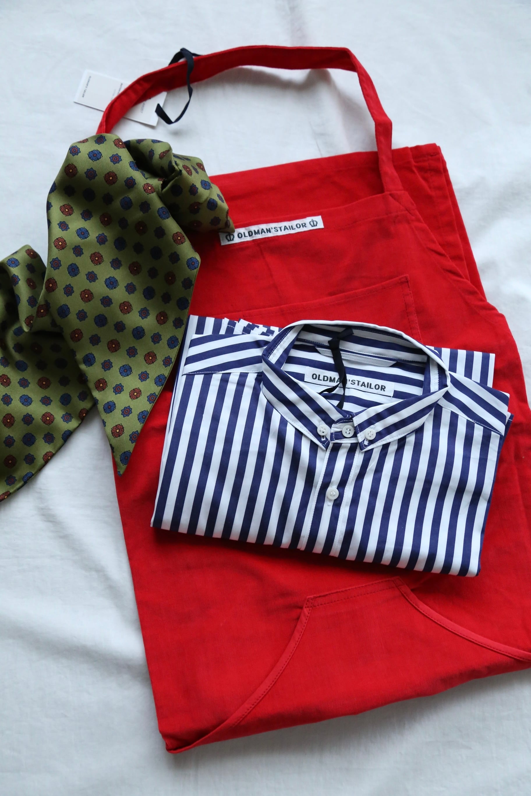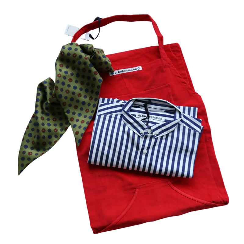 エプロン、シャツ、ストール、バッグ、ソックスのセットです。