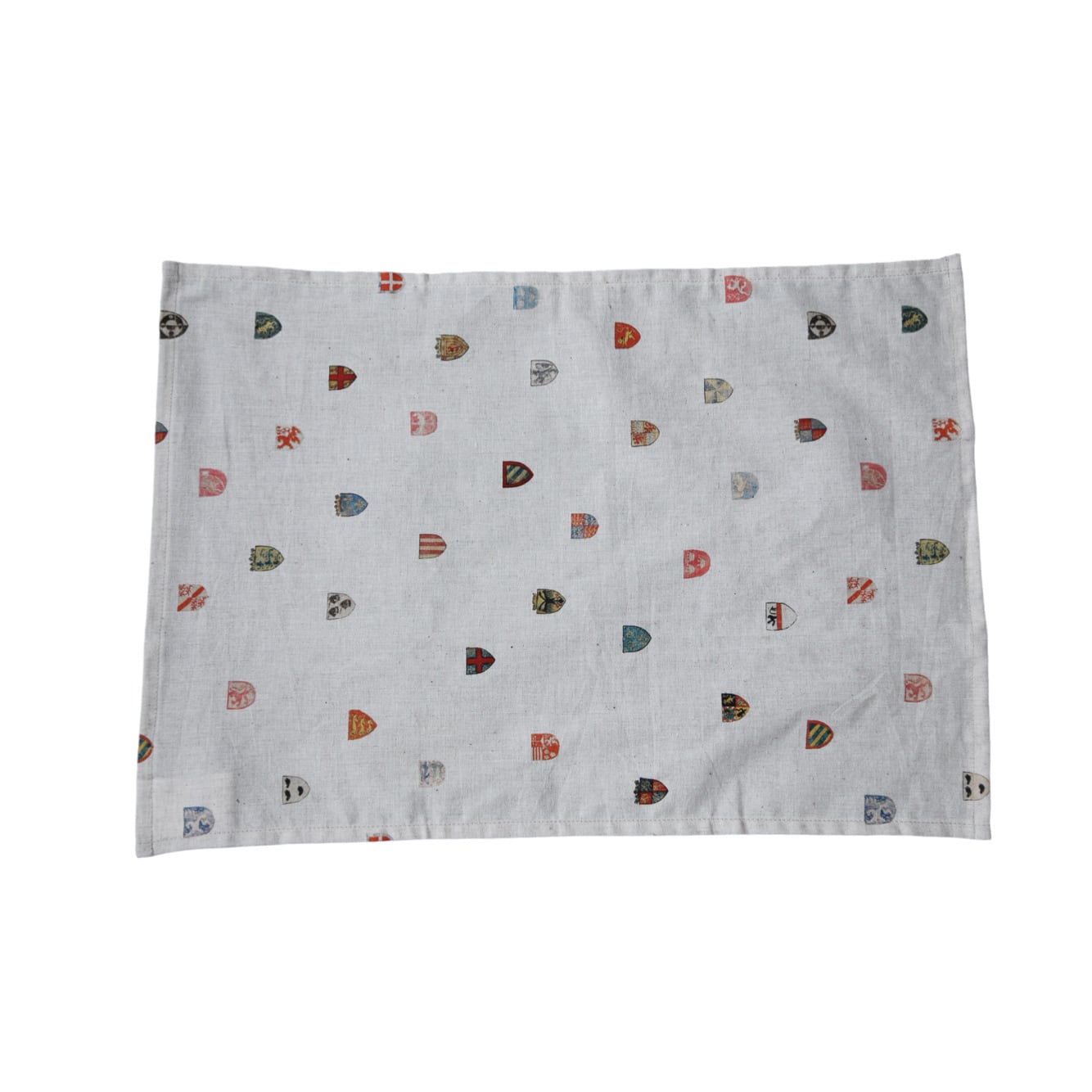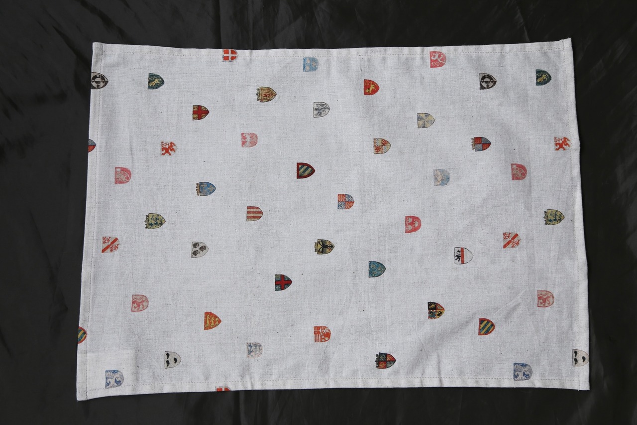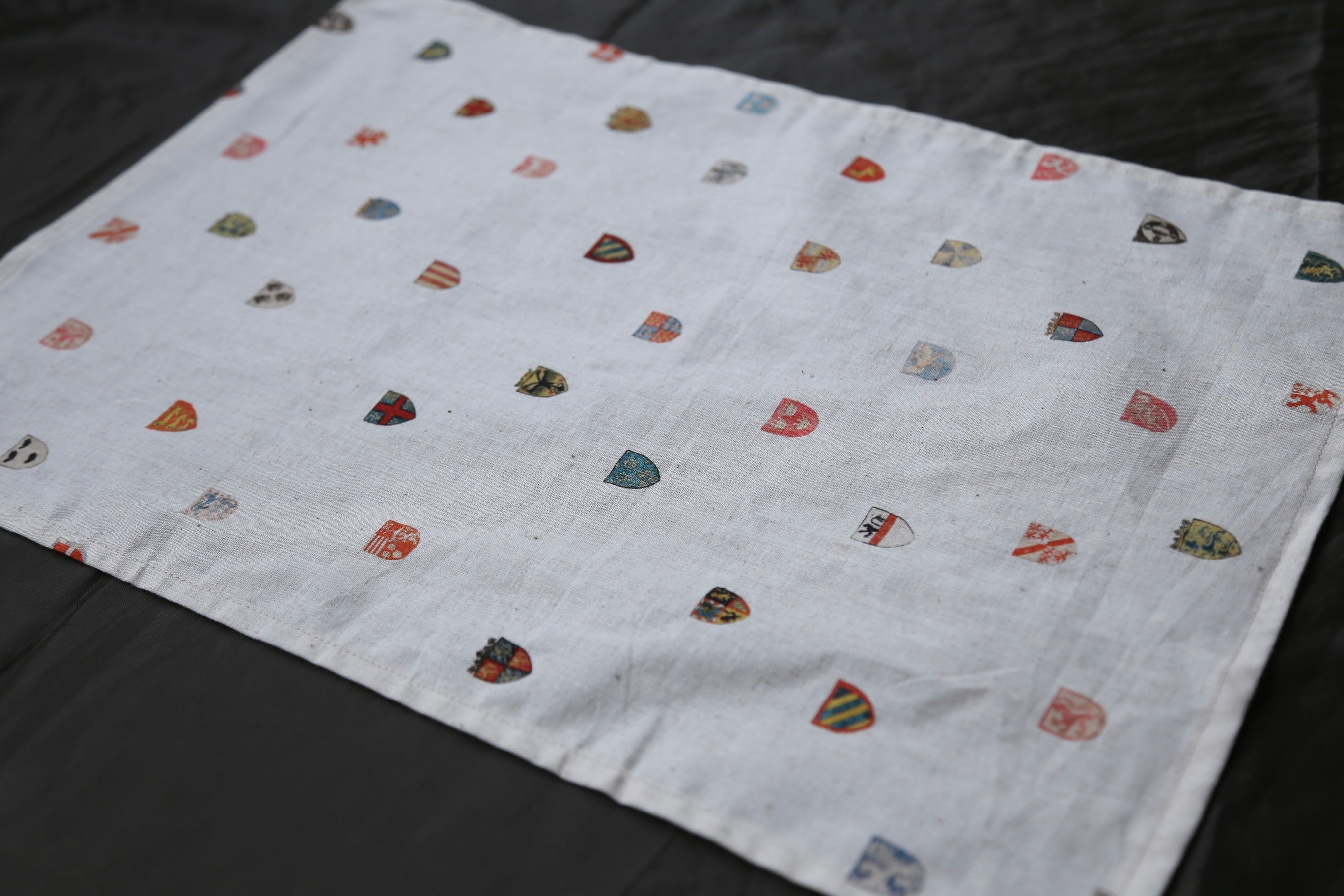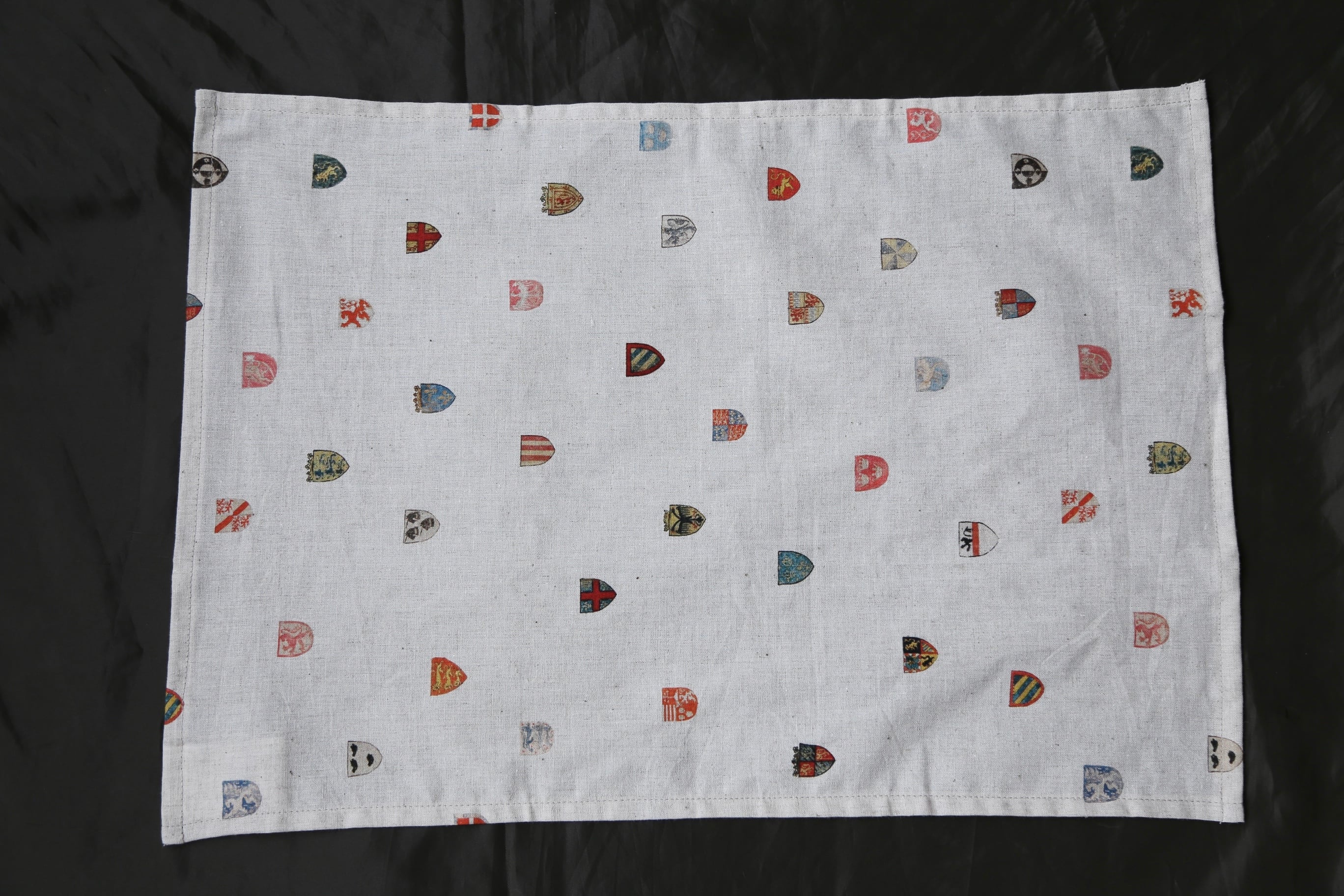 カラフルな紋章のデザインプリントのCOAT OF ARMSシリーズ。お手頃サイズのクロスは、棚のアクセント、ランチョンマット、様々な用途に広くお使いいただけます。