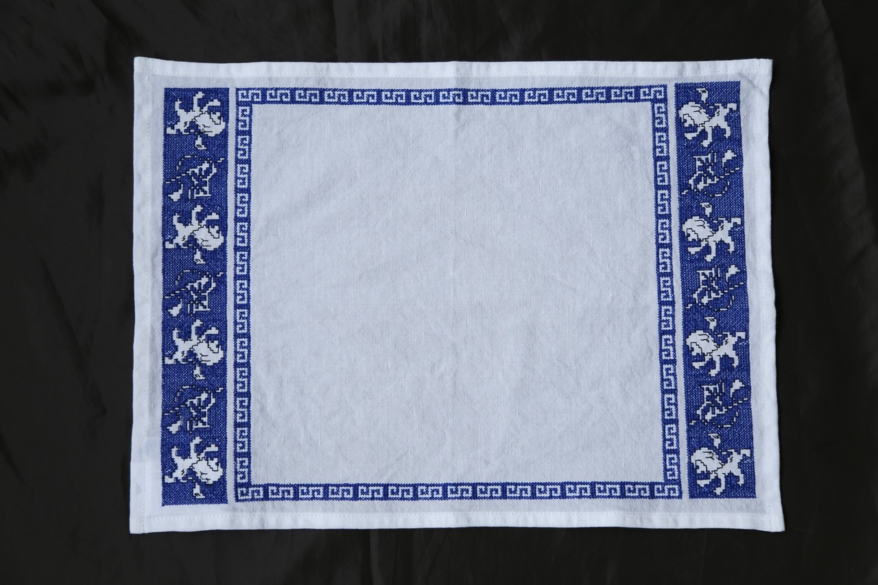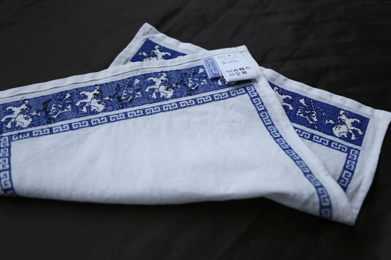 幾何学模様のRAIMON(雷文)柄が目を引くクロスは、ランチョンマットとしてはもちろん、インテリア、お出掛けに持ち歩く1枚としてもおすすめです。