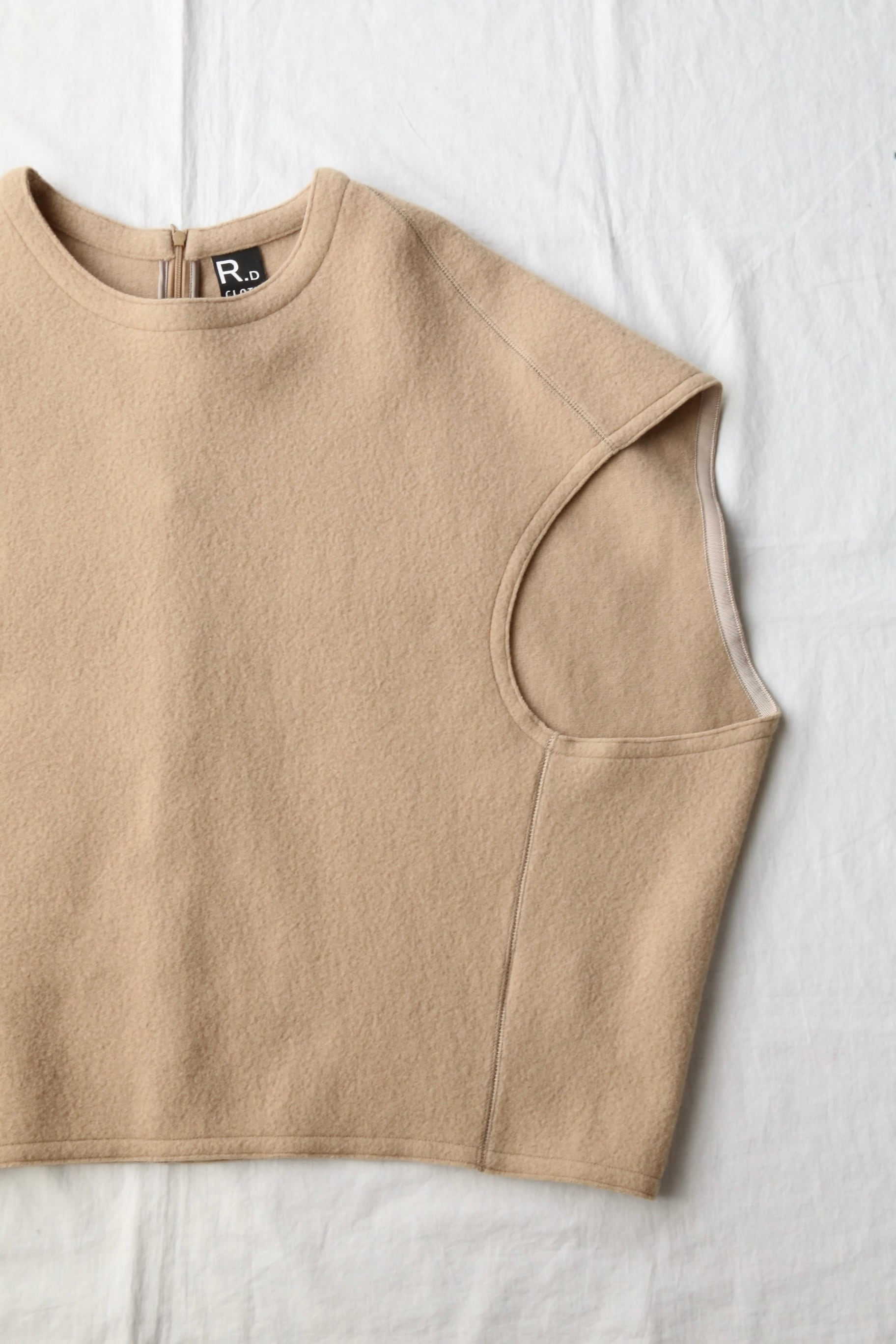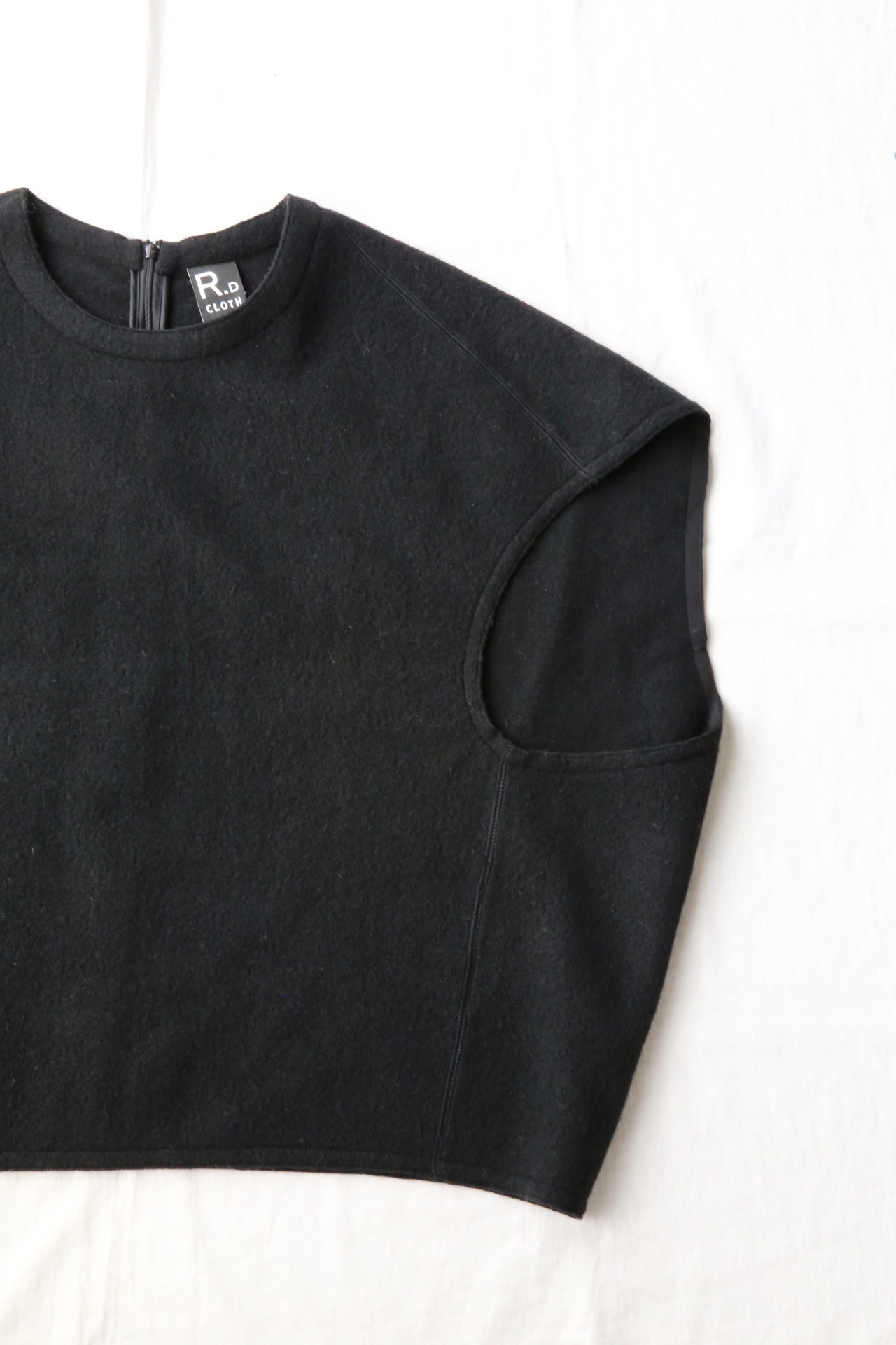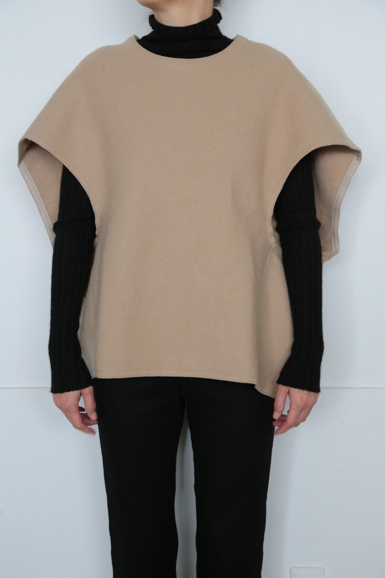 軽くて暖かいWOOL FELT NOSLEEVE PULLOVER。