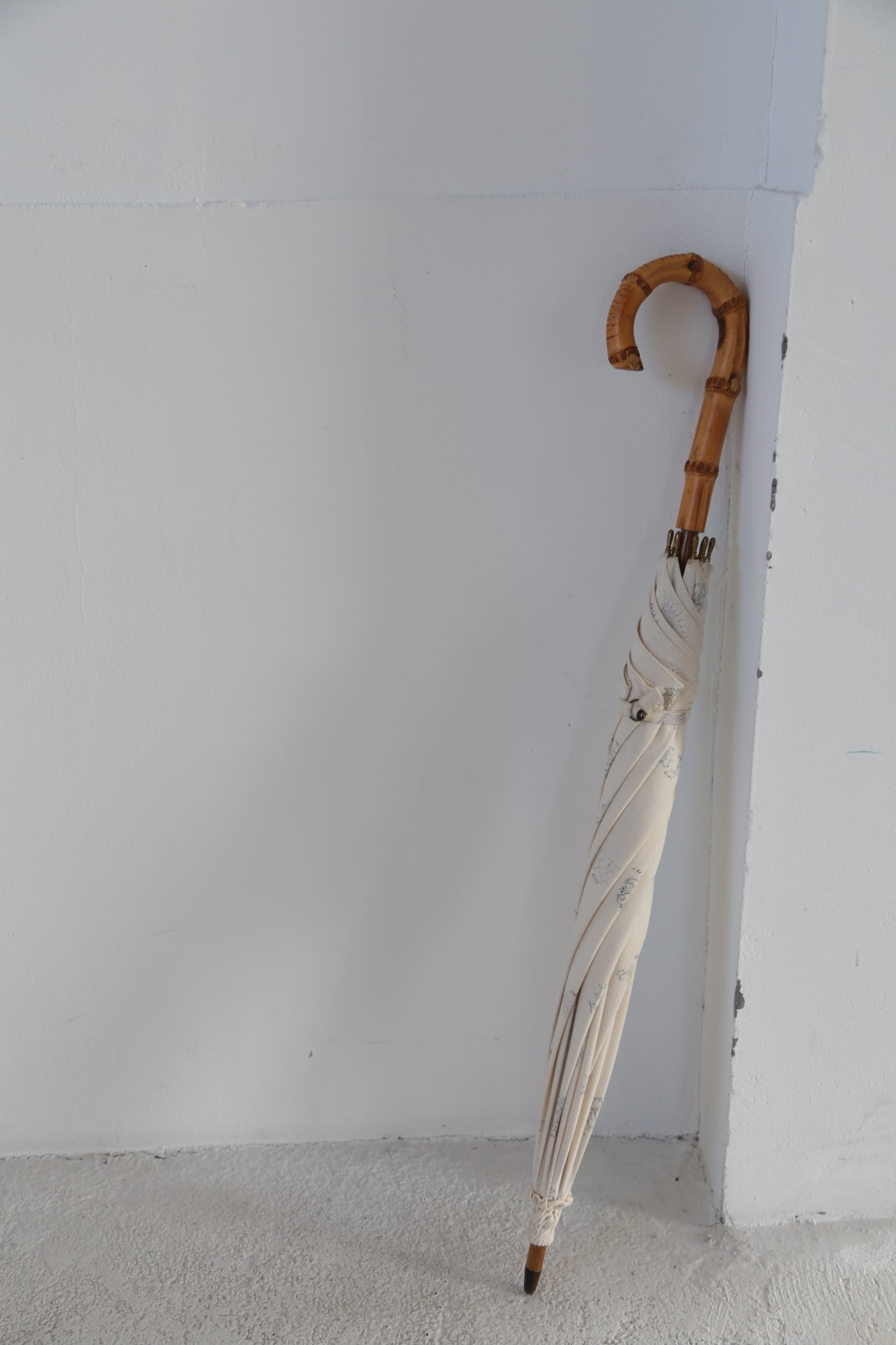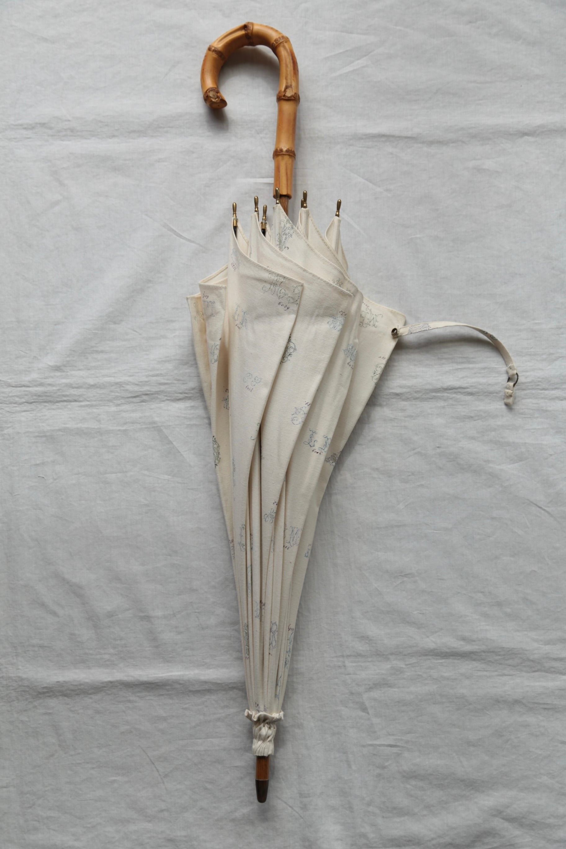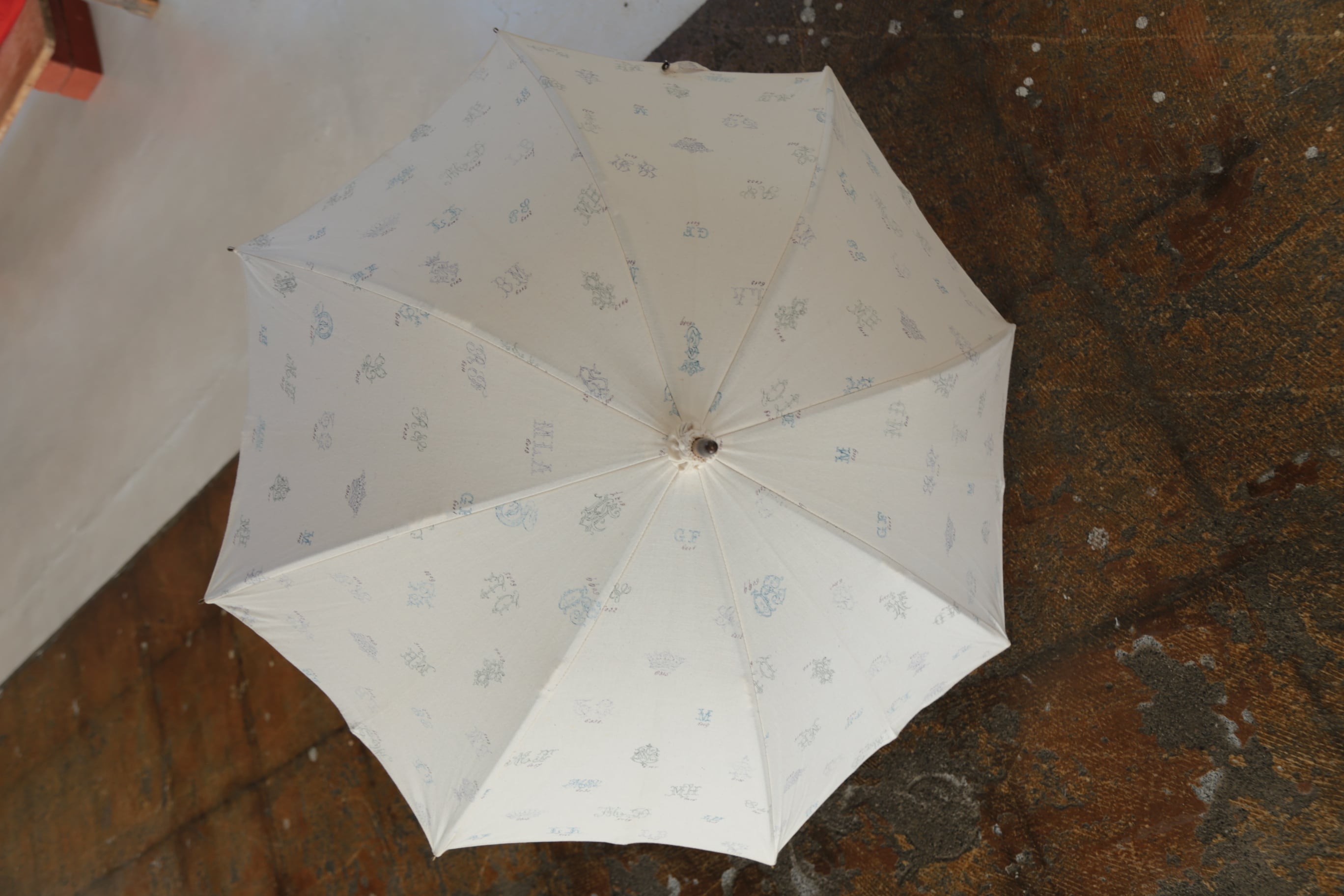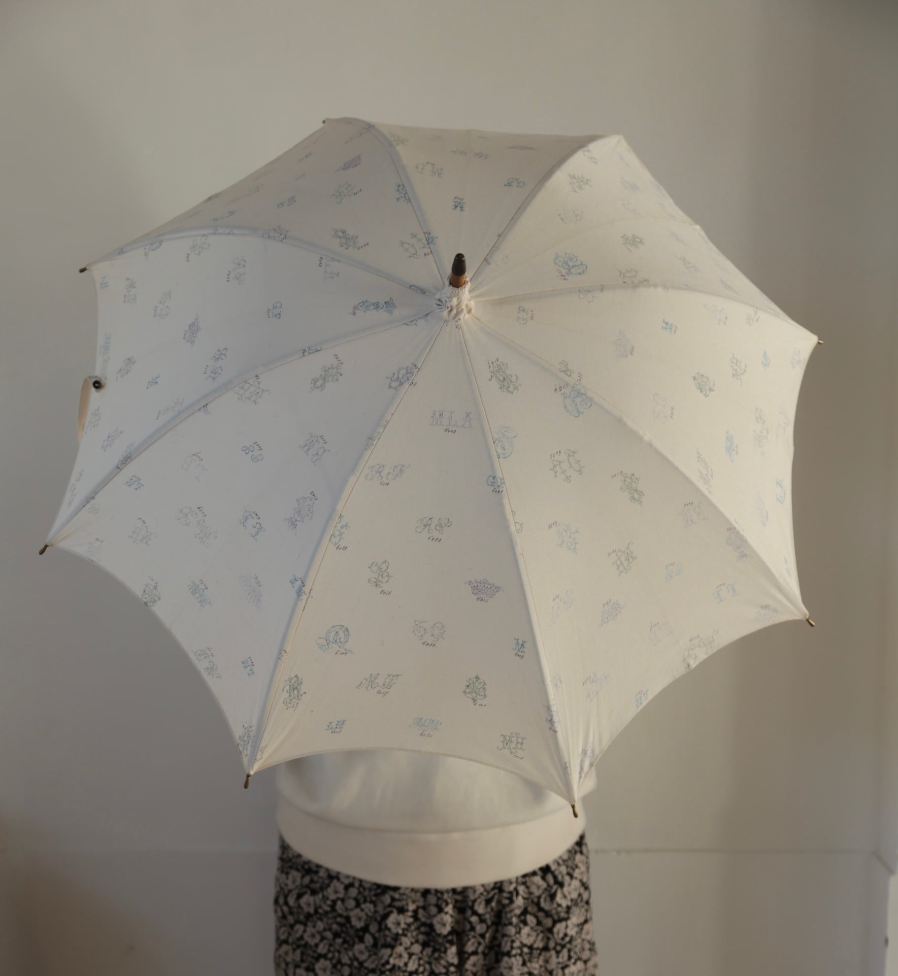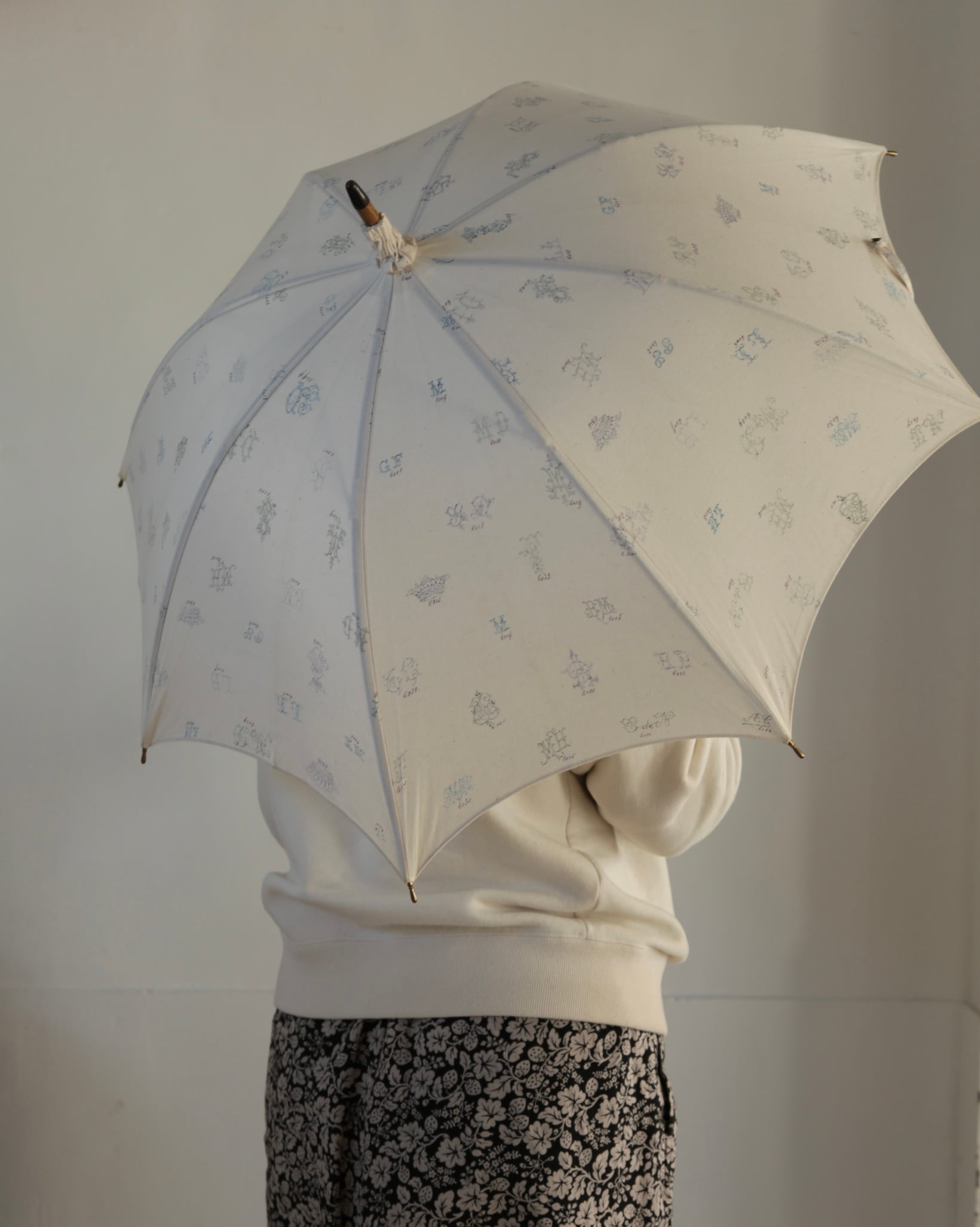 オリジナルのテキスタイル、モノグラムが日傘となっております。