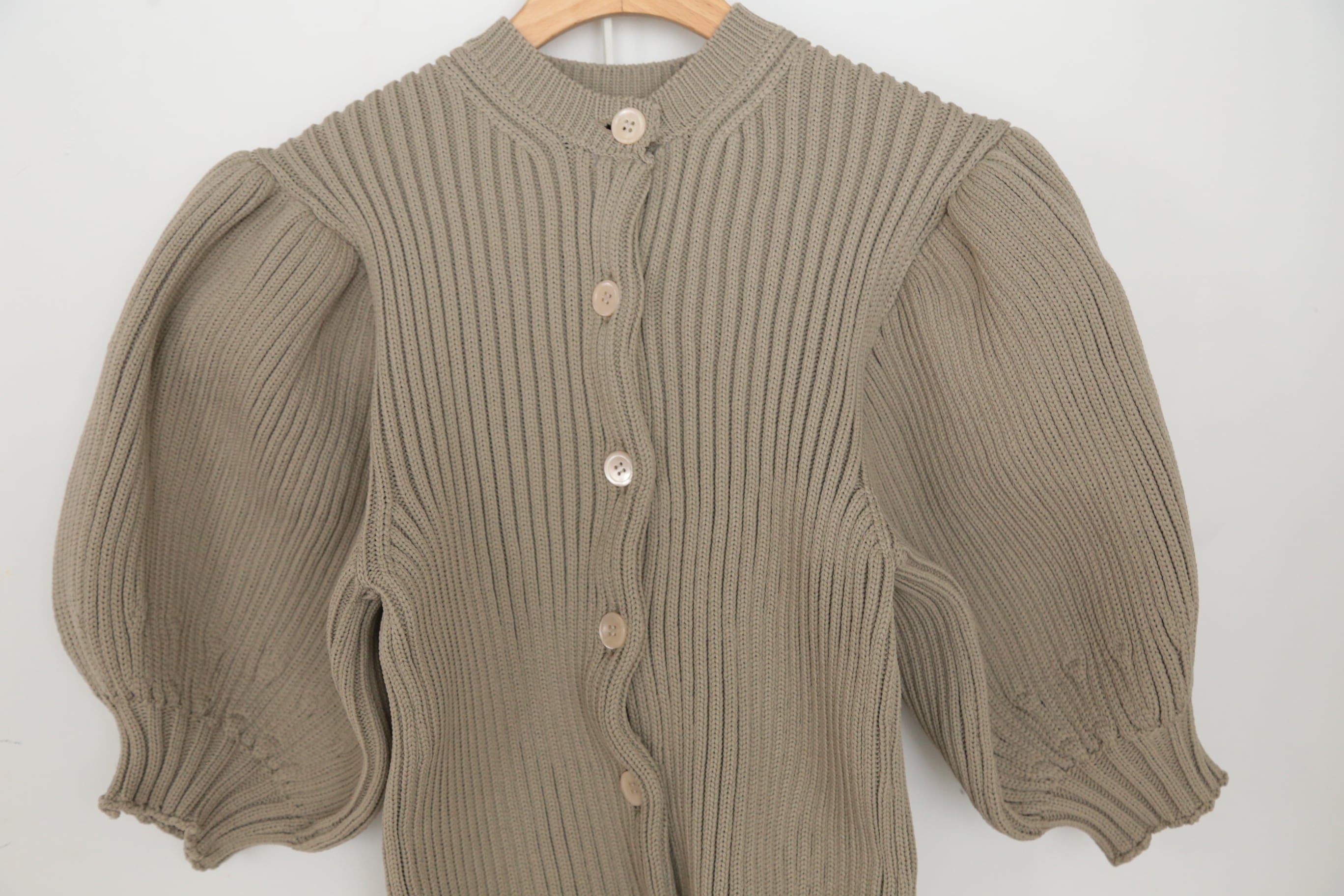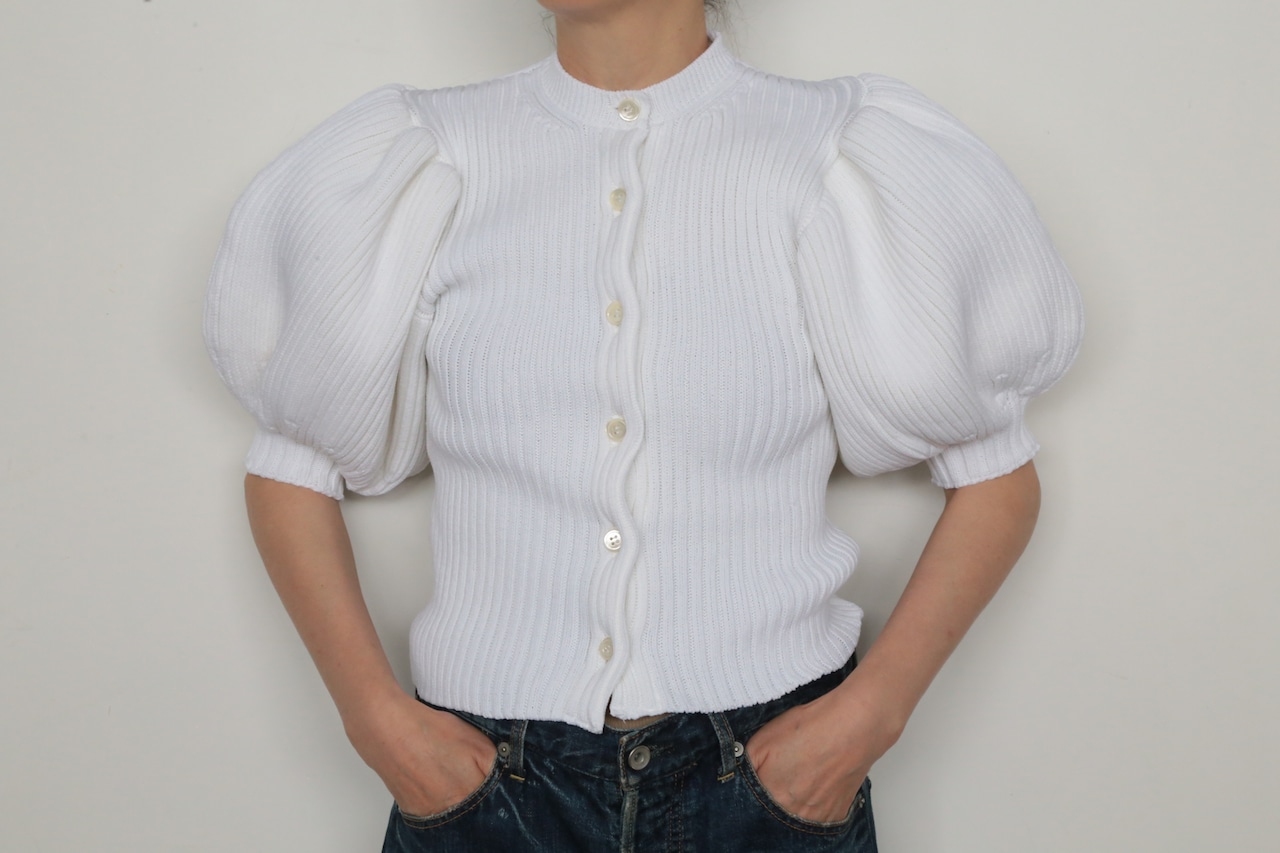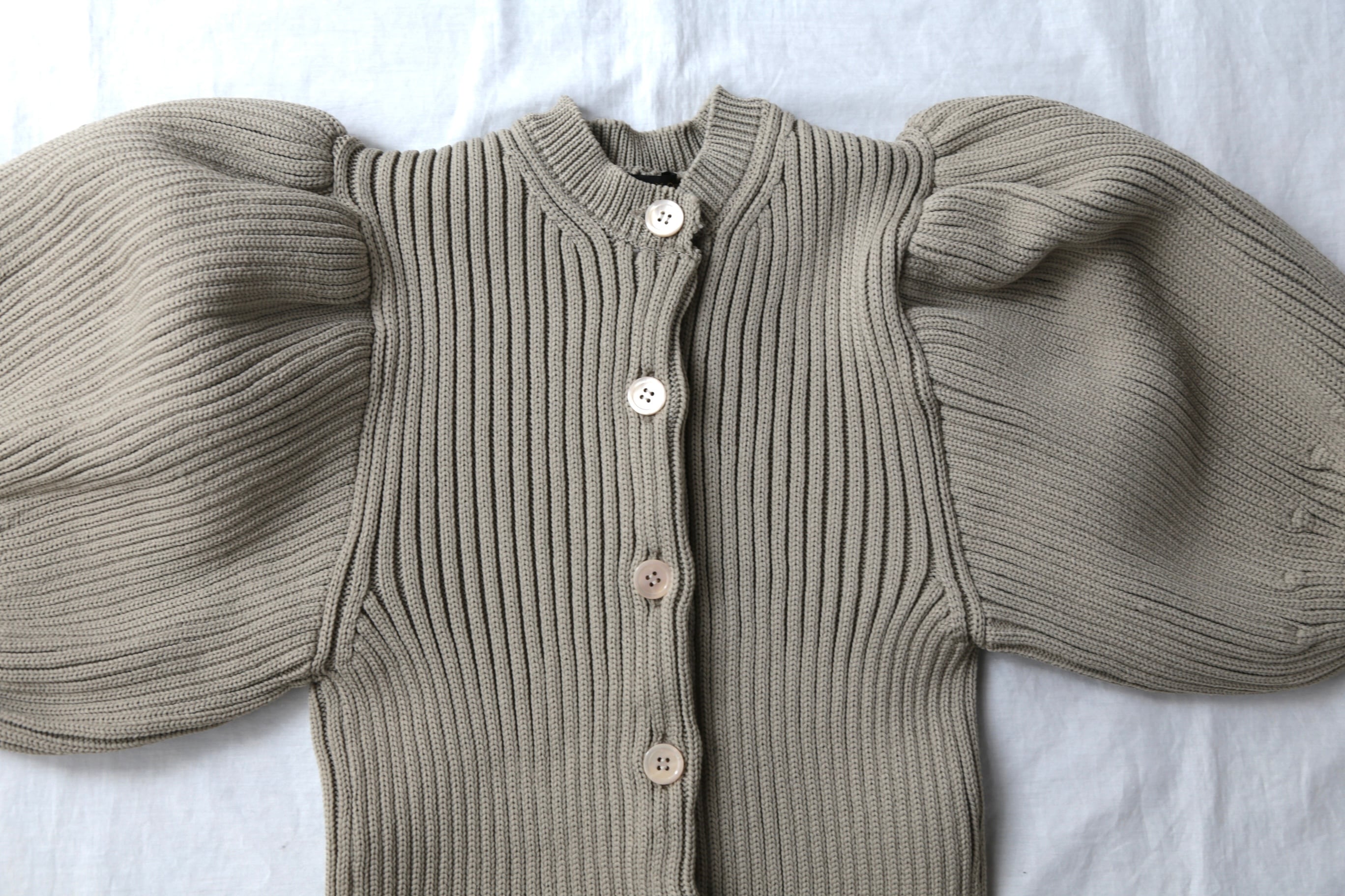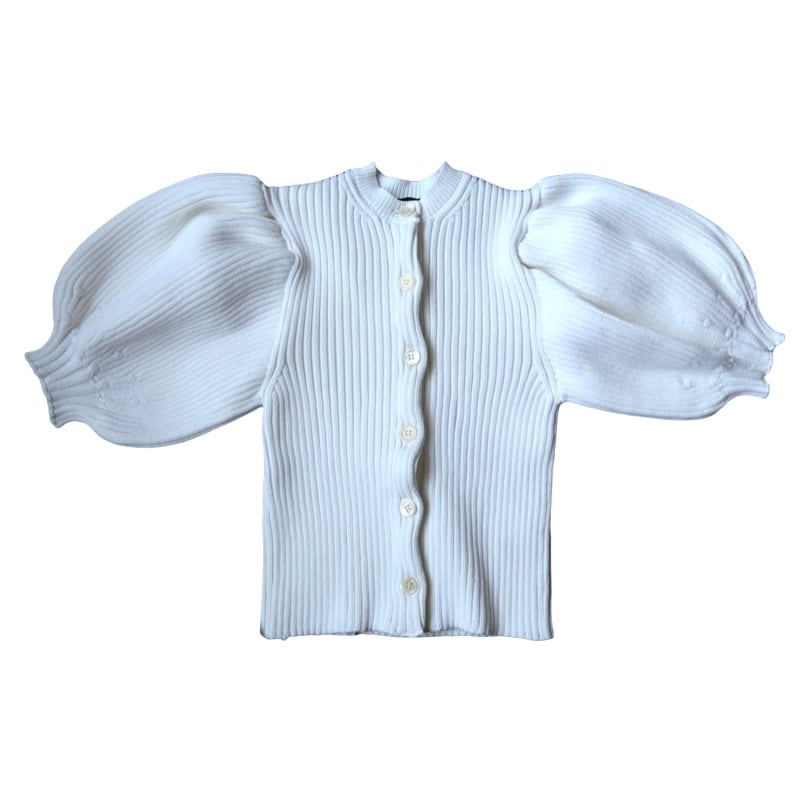 ボリュームのあるパフスリーブが素敵なLILIAN YARN PUFF SLEEVE CARDIGAN。