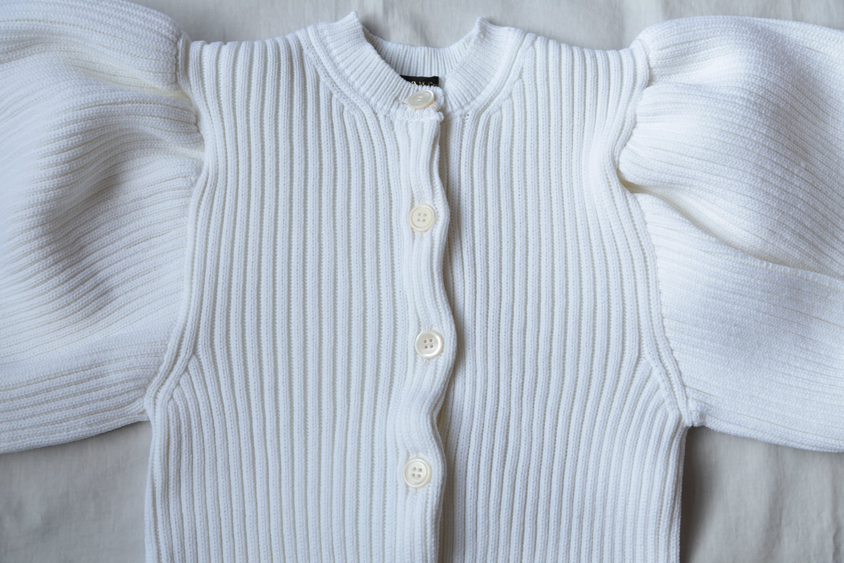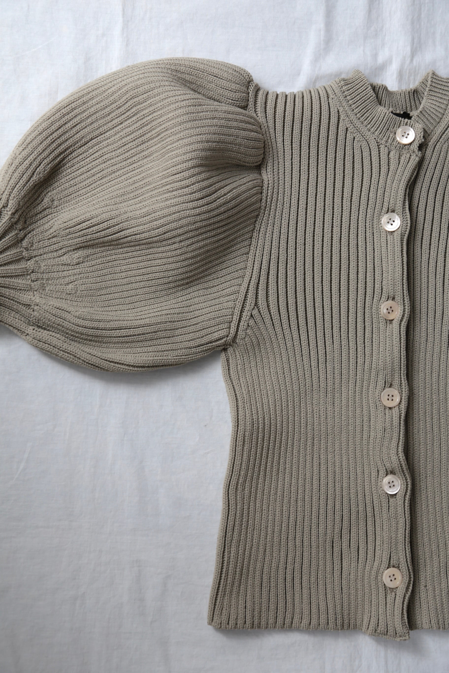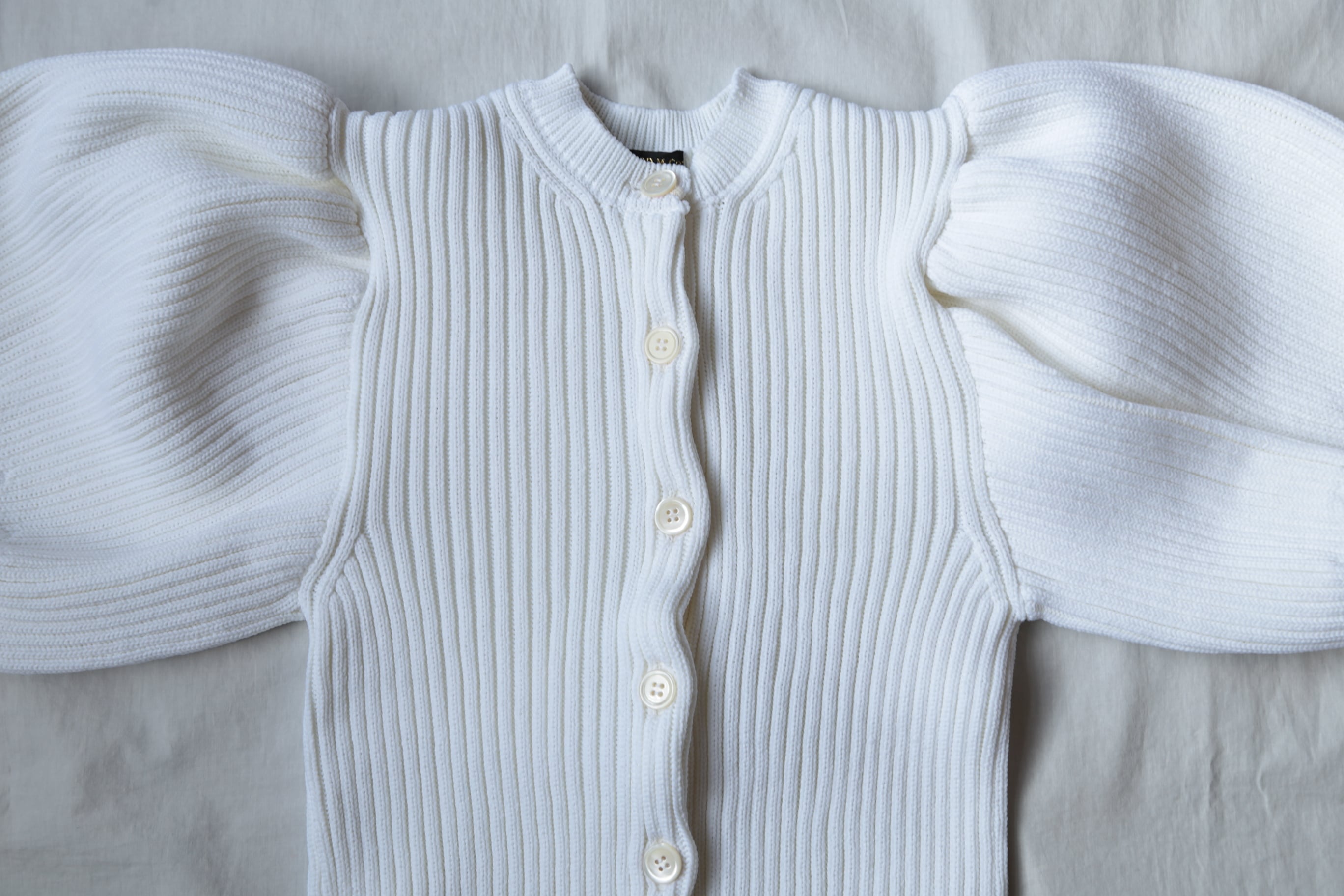 ボリュームのあるパフスリーブが素敵なLILIAN YARN PUFF SLEEVE CARDIGAN。