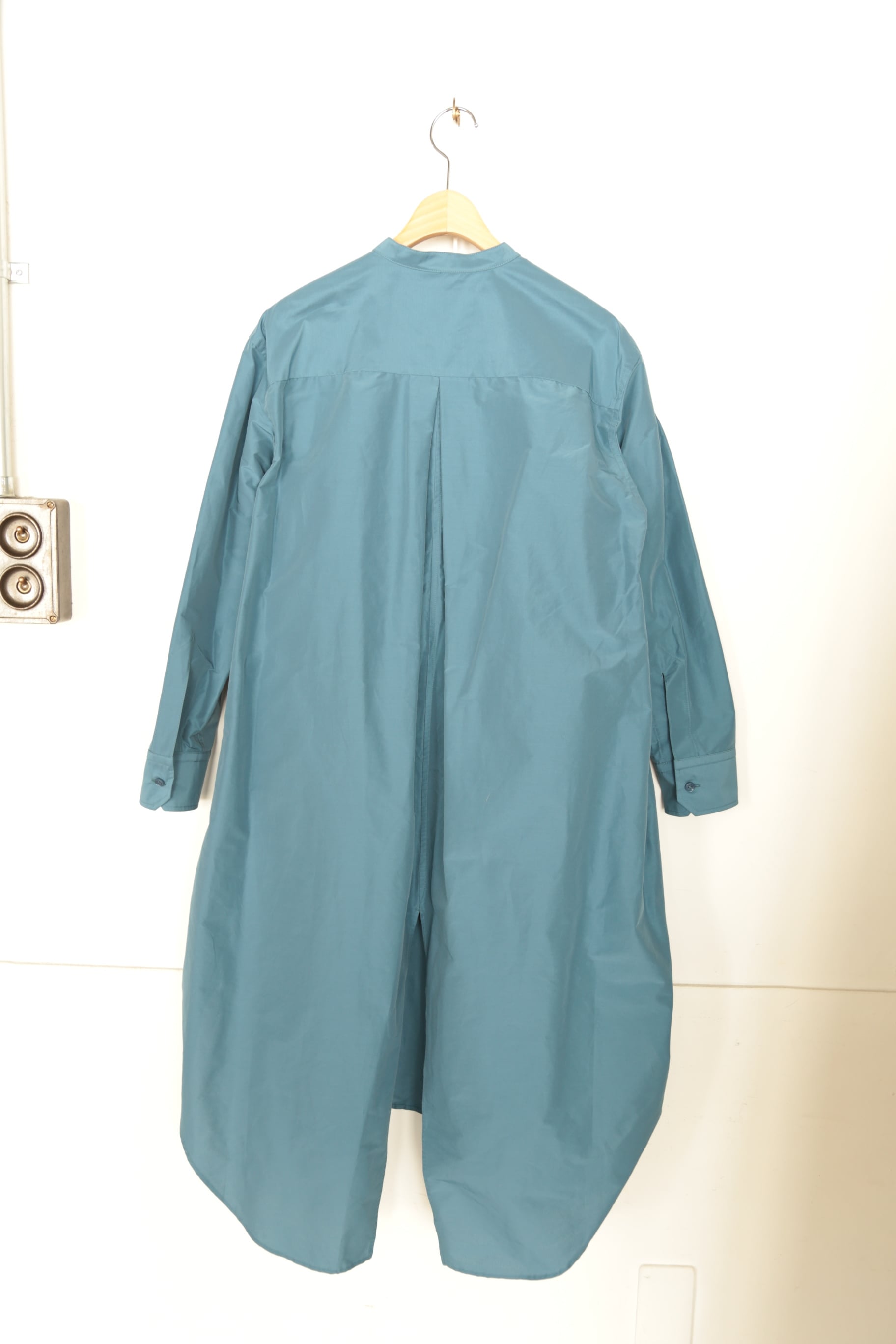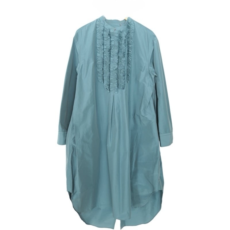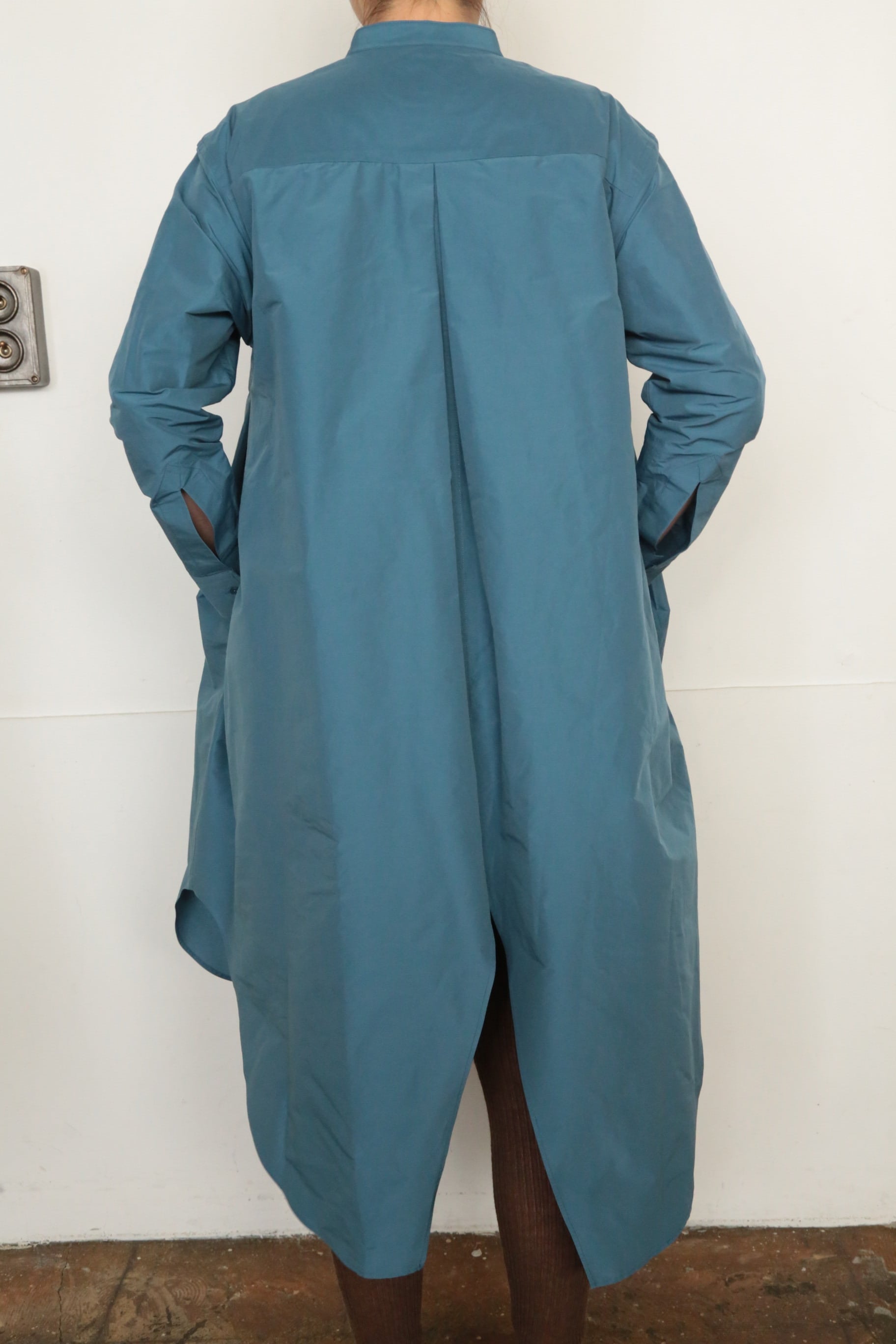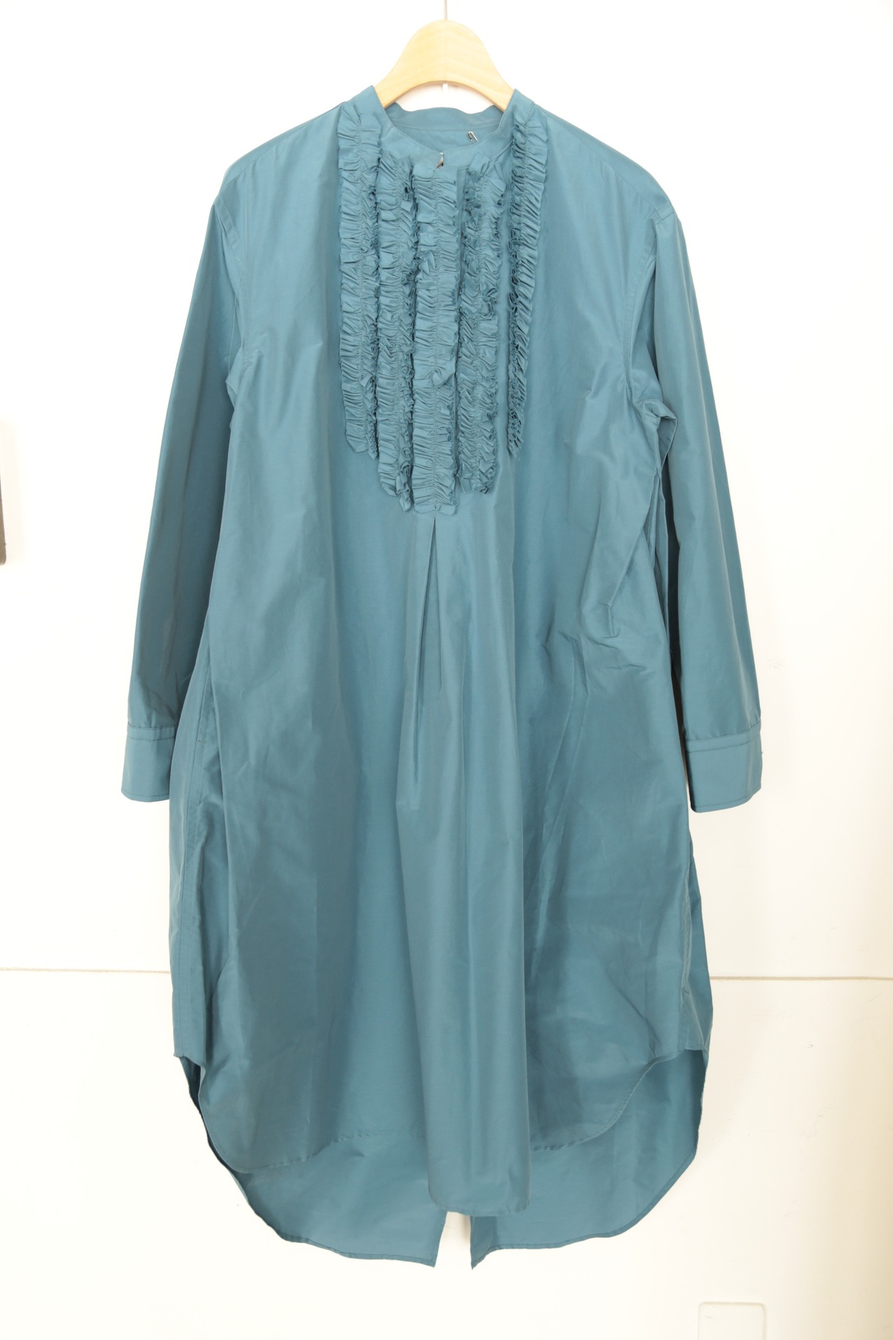 美しいブルーが印象的なTAFFETA SWALLOW TAIL FRILL SHIRT。