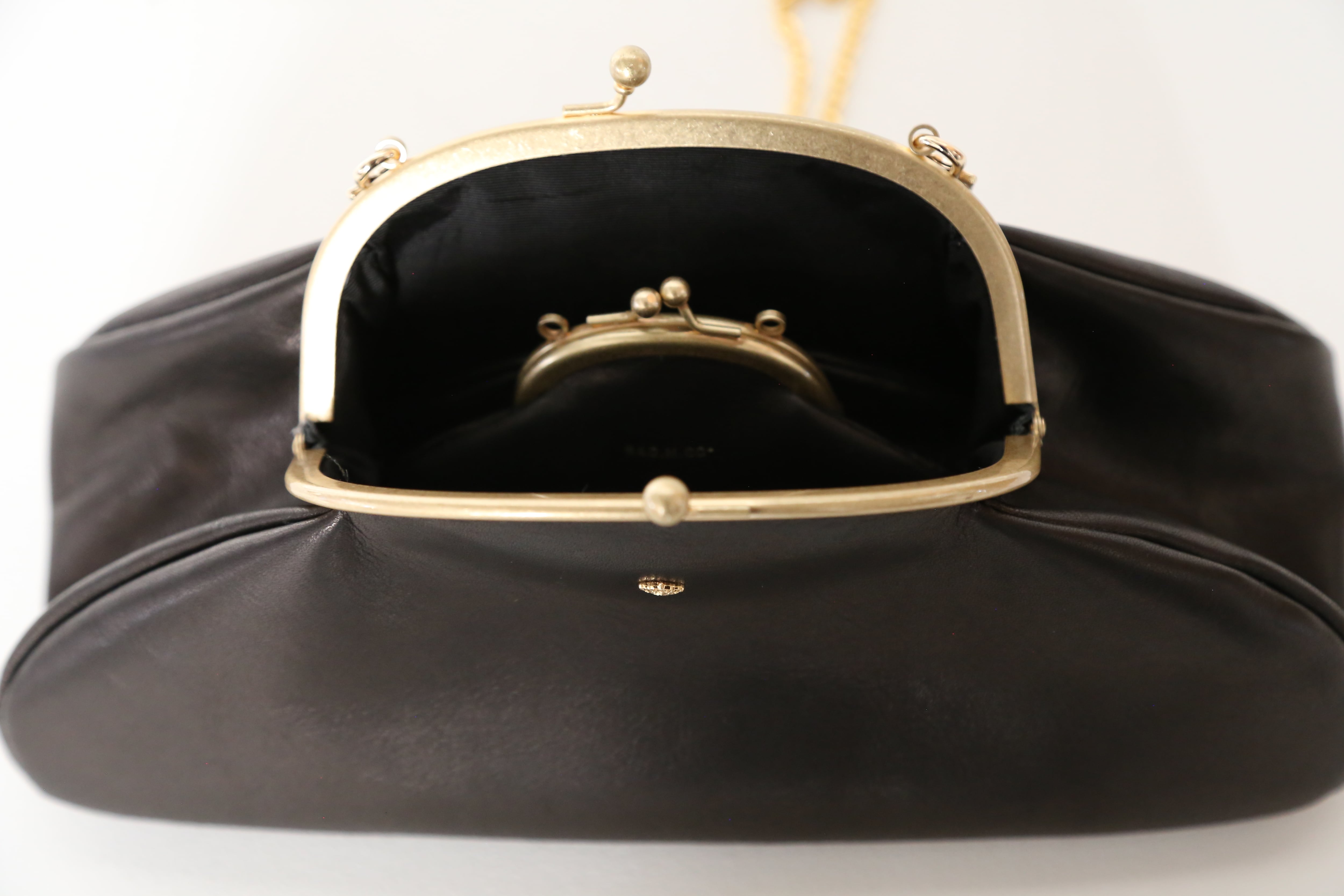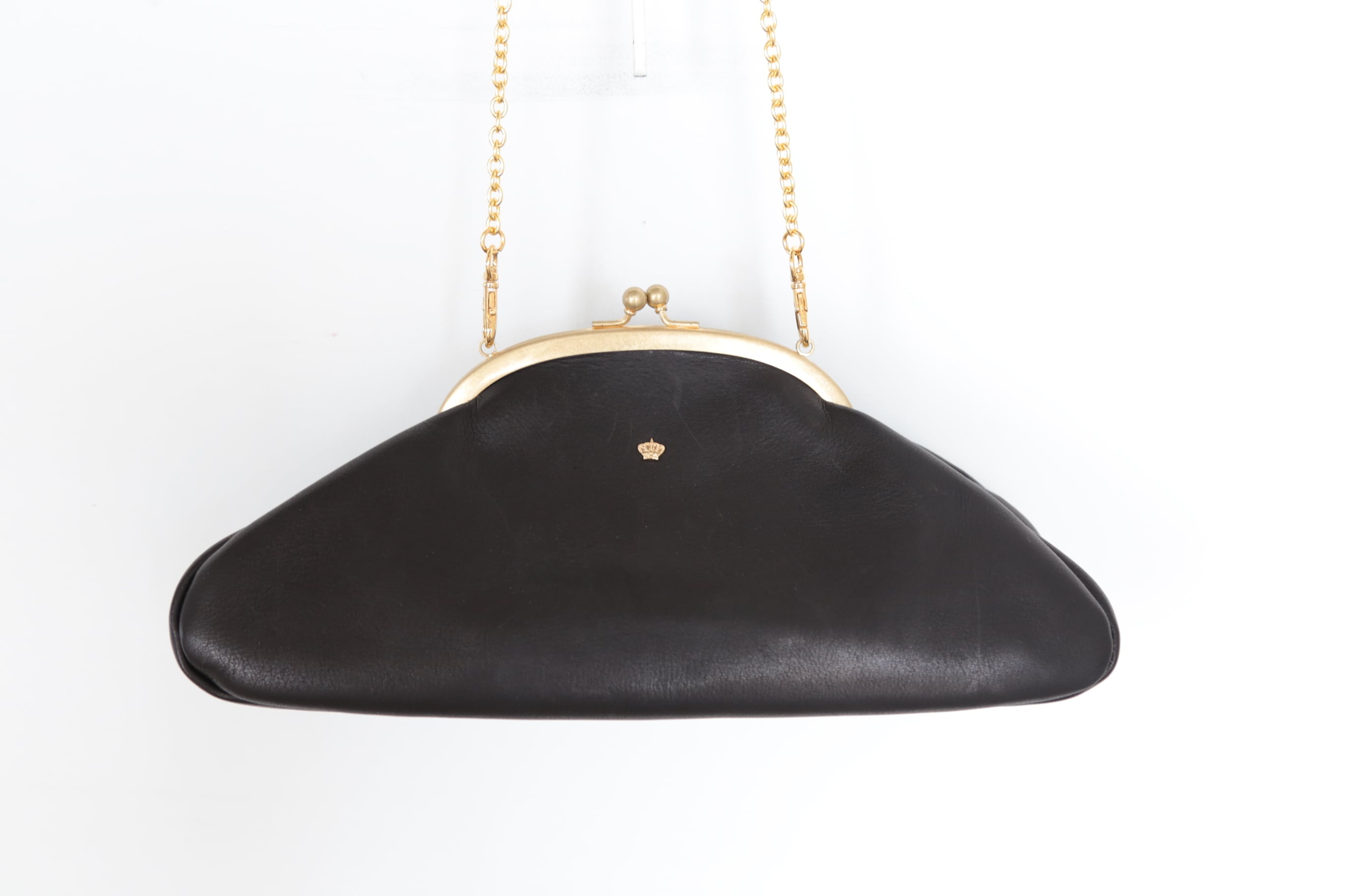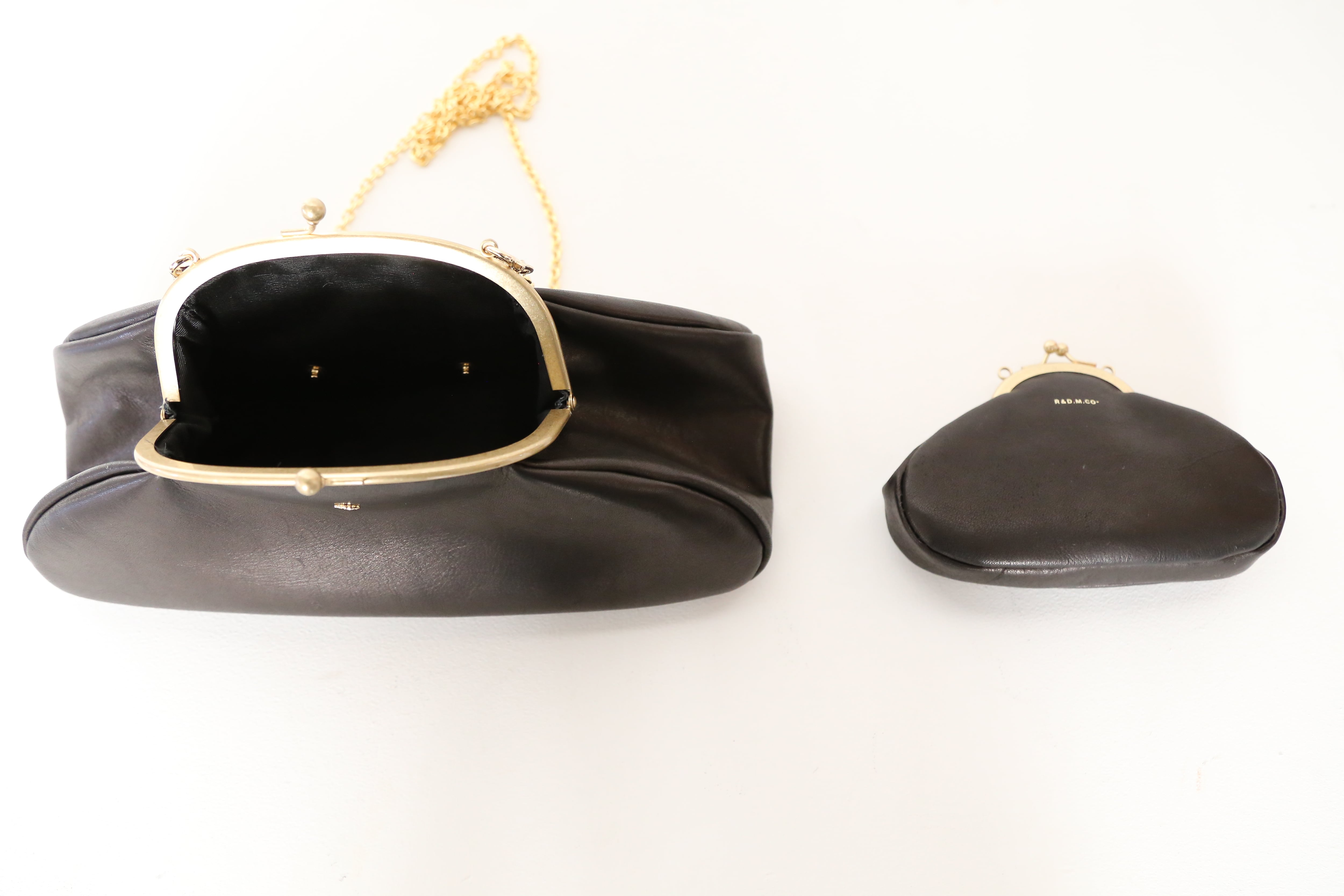 洗練されたデザインが魅力のCLASP IN CLASP BAG。 上質なレザーを使用し、がま口の独特なフォルムが個性を引き立てます。チェーン付きで持ち運びも便利、カジュアルなコーディネートにはもちろん、特別な日のおしゃれにもぴったりです。シンプルながらも存在感のあるこのバッグは、どんなシーンでもあなたのスタイルを引き立てることでしょう。ぜひ、手に取ってその魅力を感じてみてください!