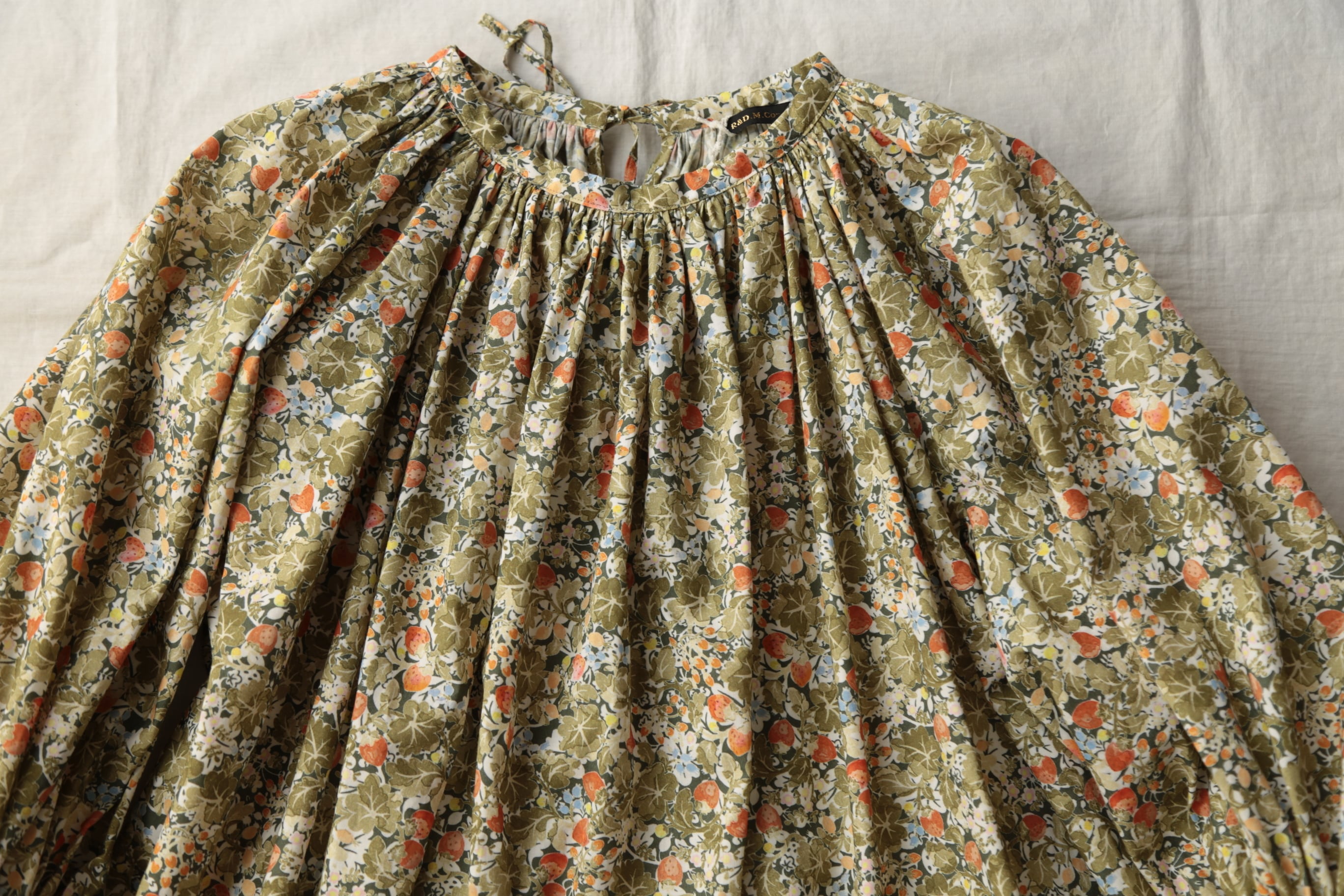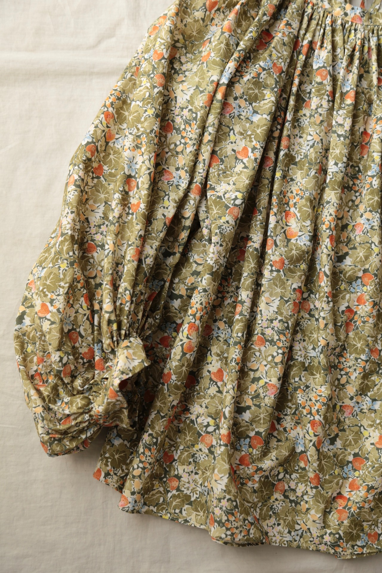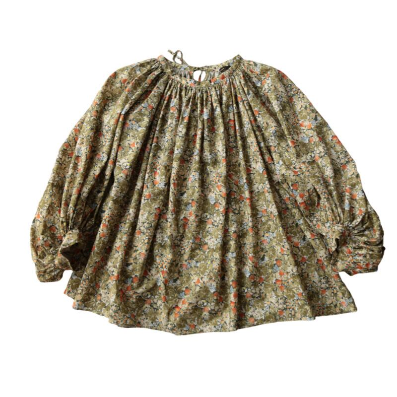人気定番のワイルドベリーをカラフルにアレンジした WILD BERRY FIELD LAWN GATHER SMOCK。Trueは新緑のような鮮やかな色合い、Sepiaは水彩画のようなタッチの色合いが素敵です。