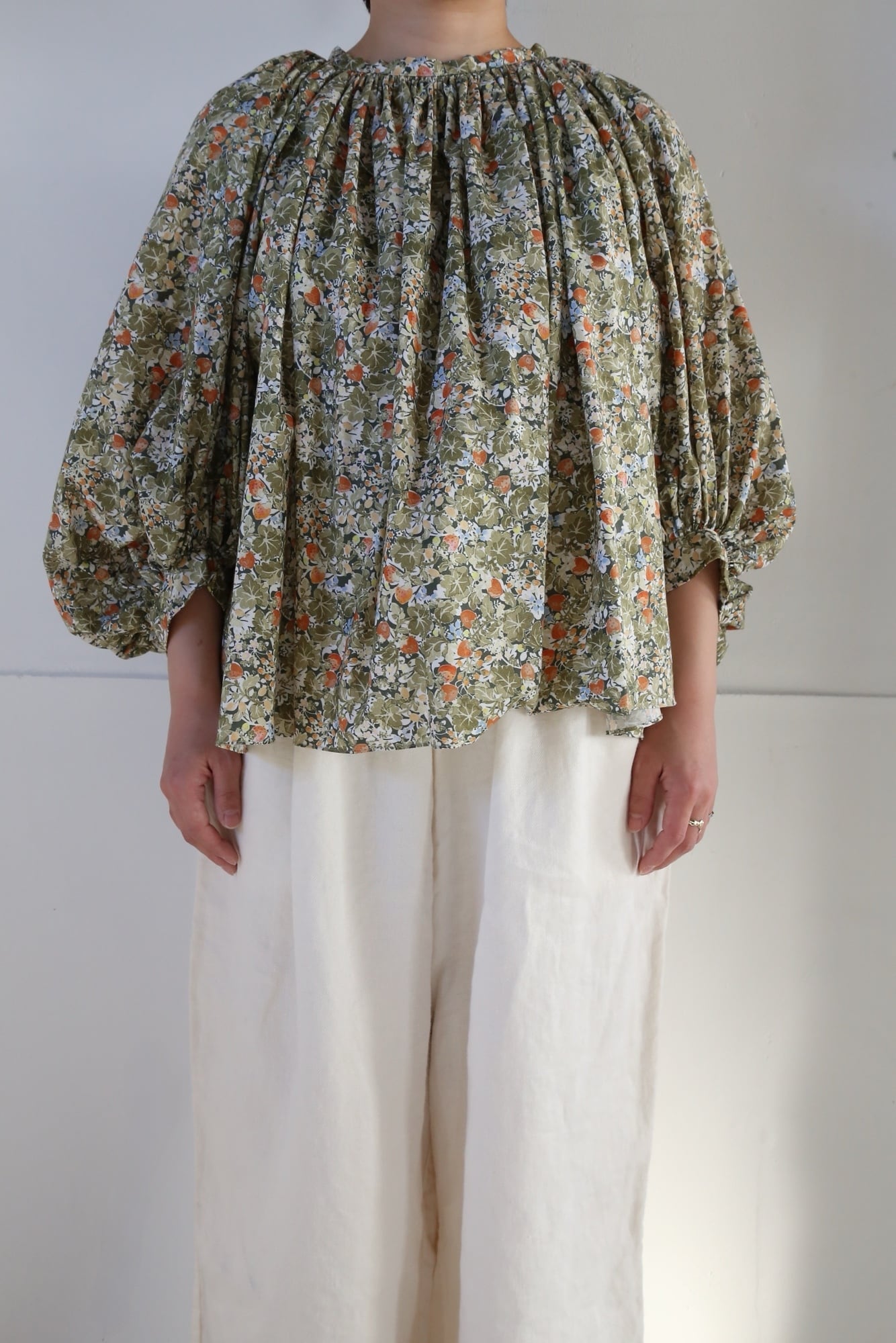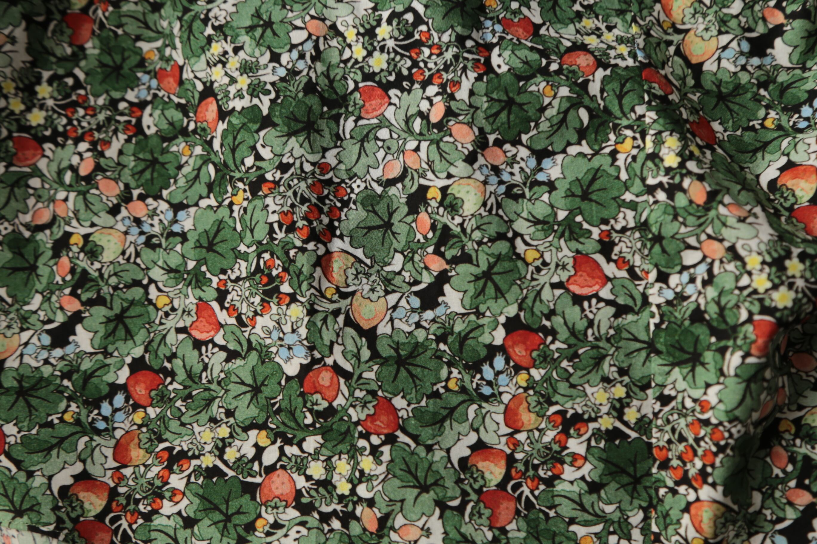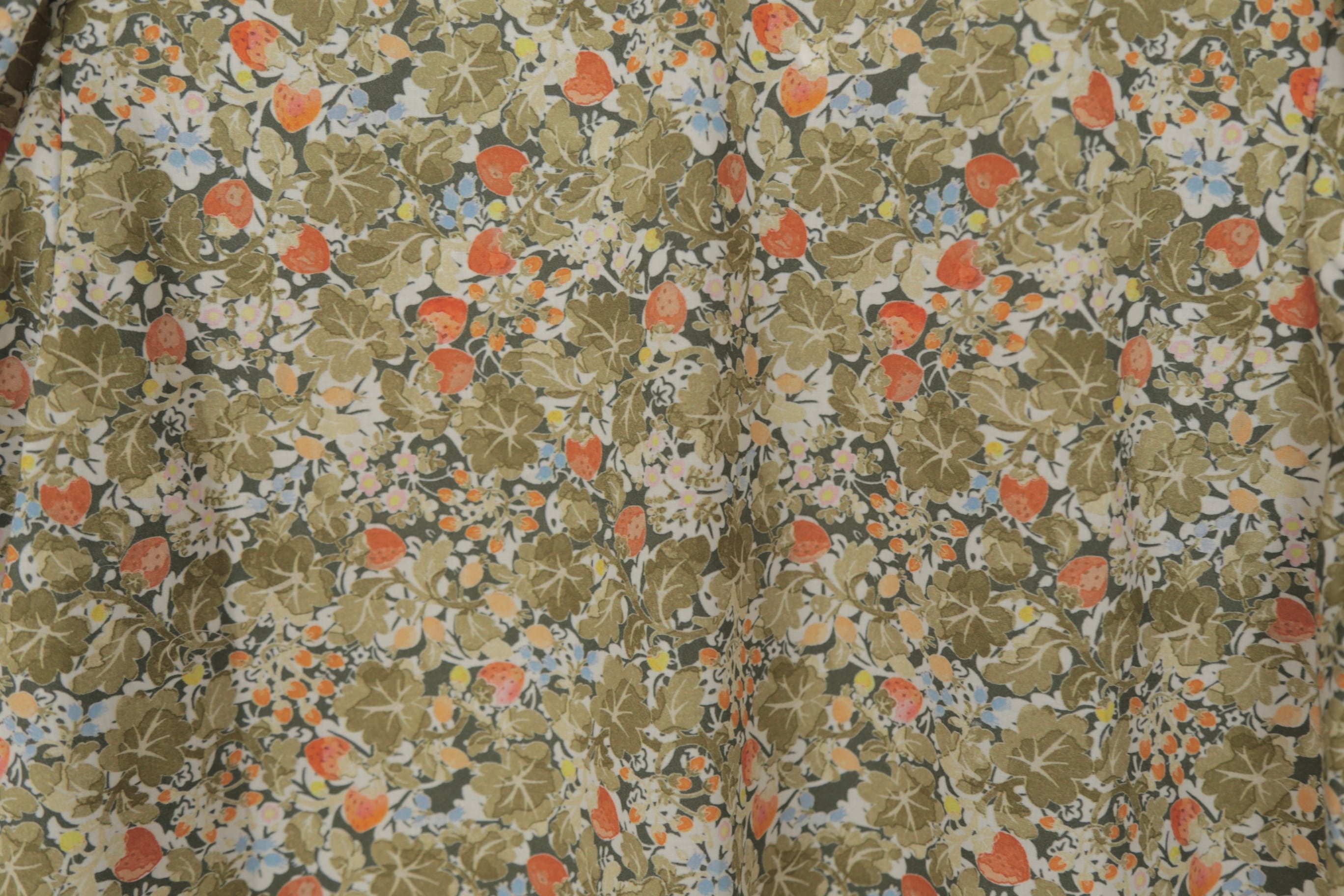 人気定番のワイルドベリーをカラフルにアレンジした WILD BERRY FIELD LAWN GATHER SMOCK。Trueは新緑のような鮮やかな色合い、Sepiaは水彩画のようなタッチの色合いが素敵です。