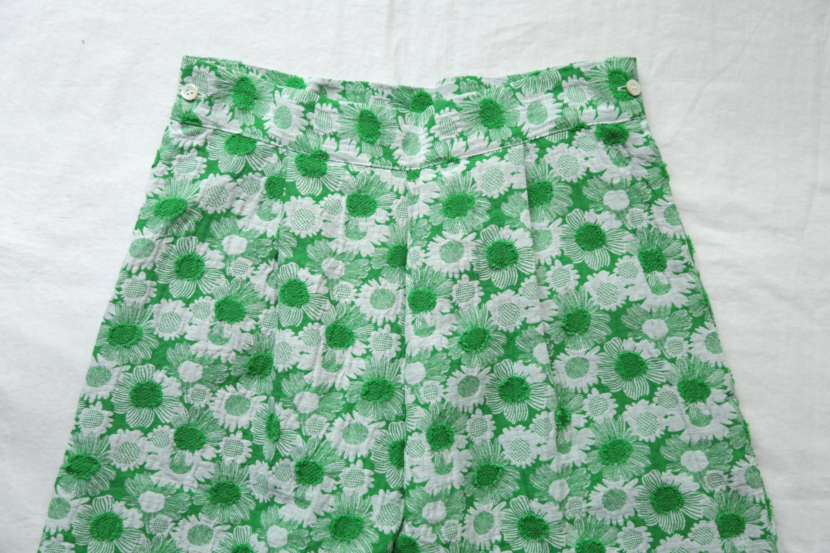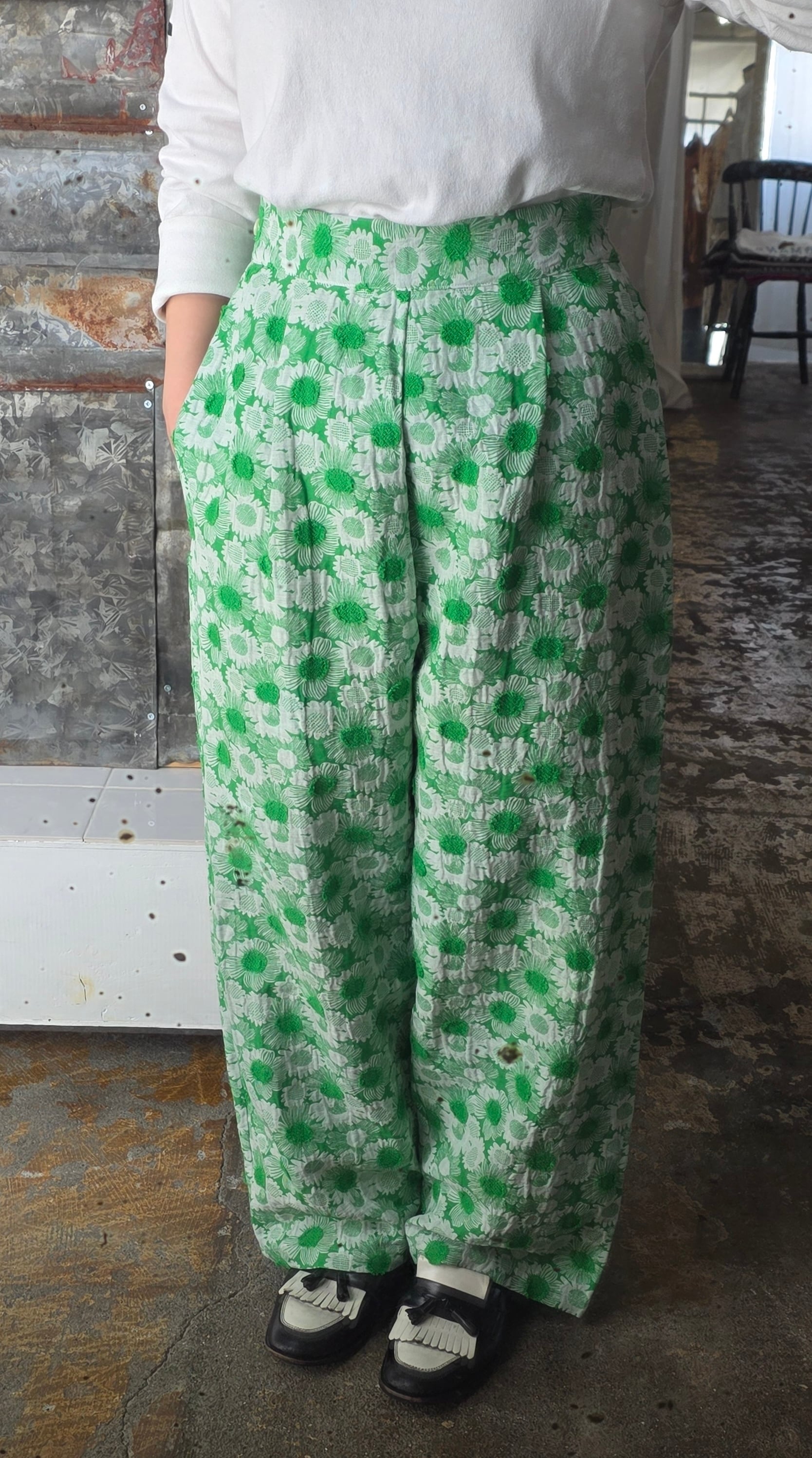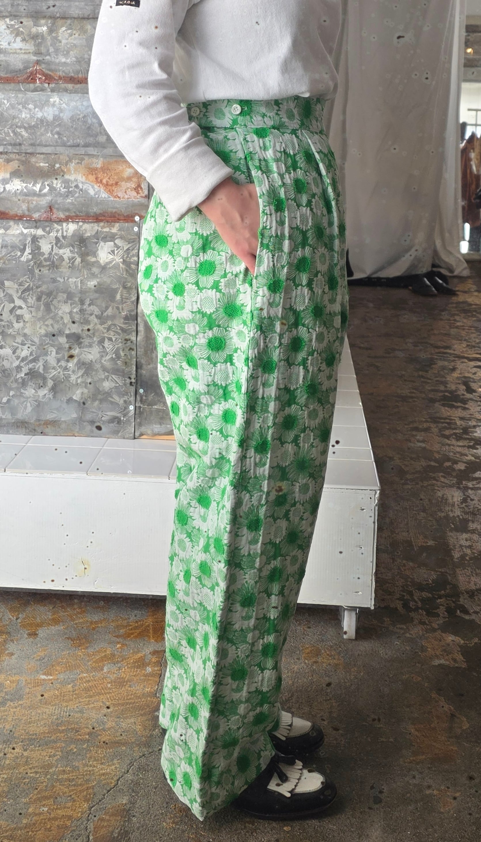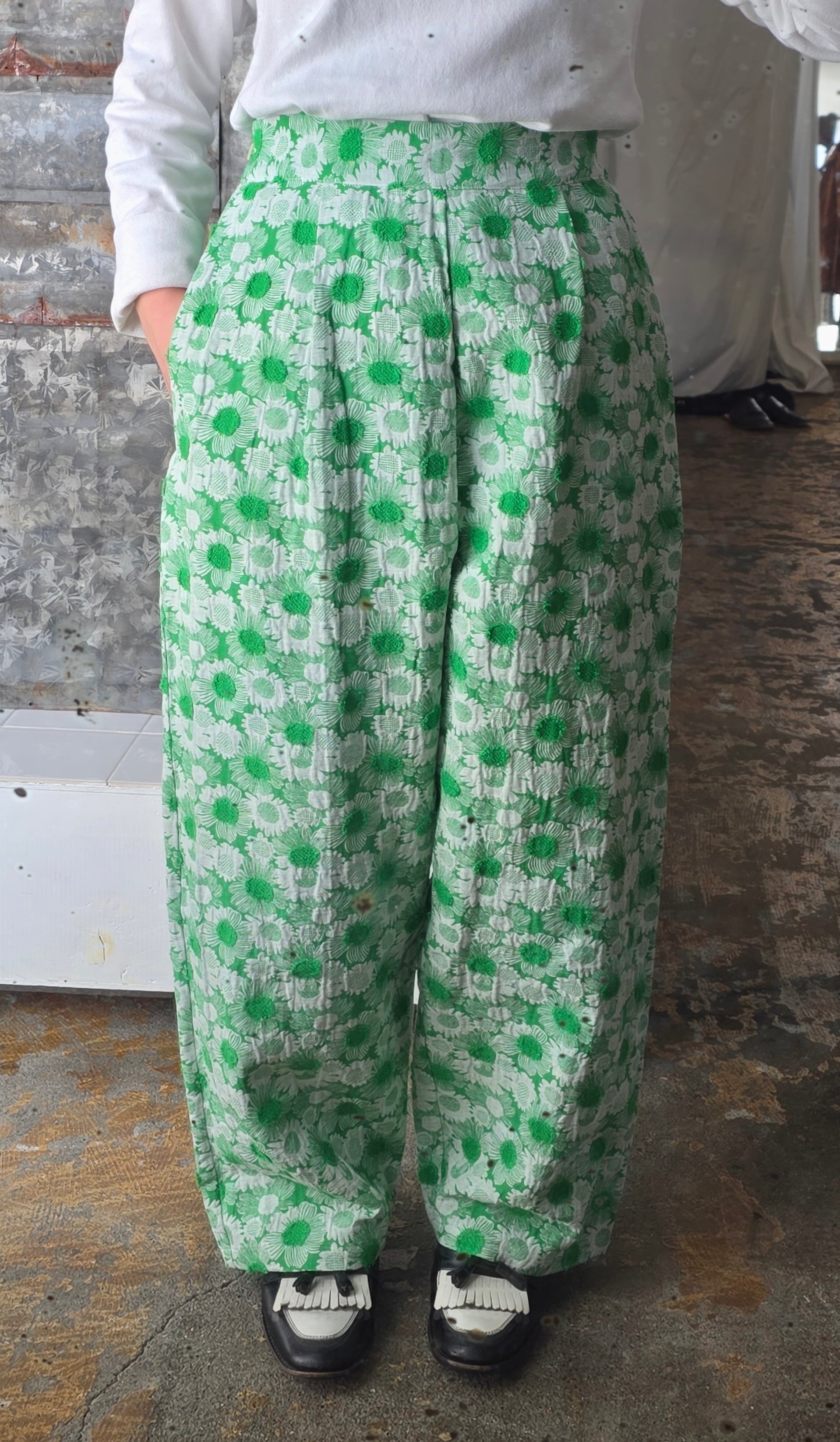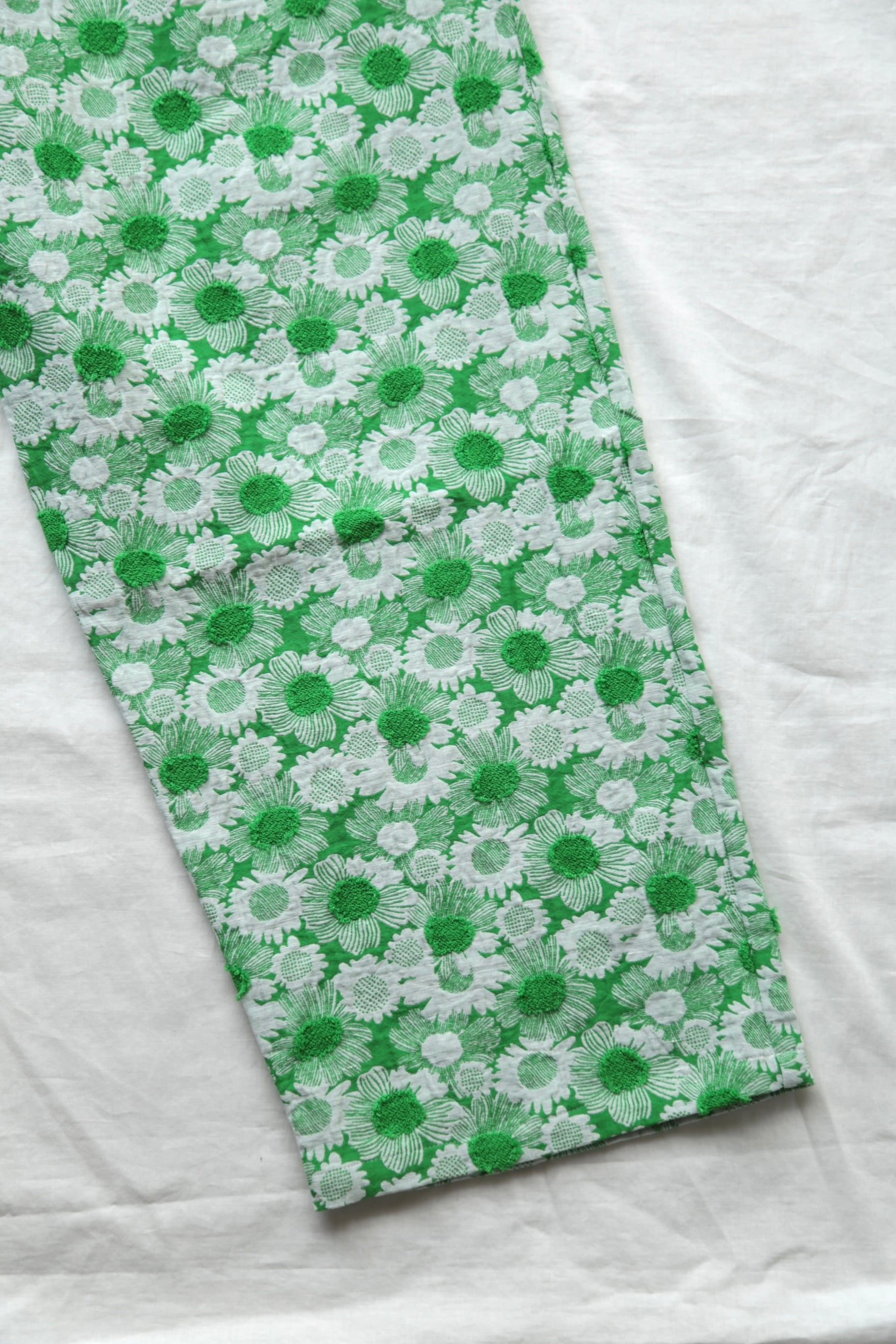 鮮やかなグリーンのデイジーが印象的なHIGH WAIST PANTS。