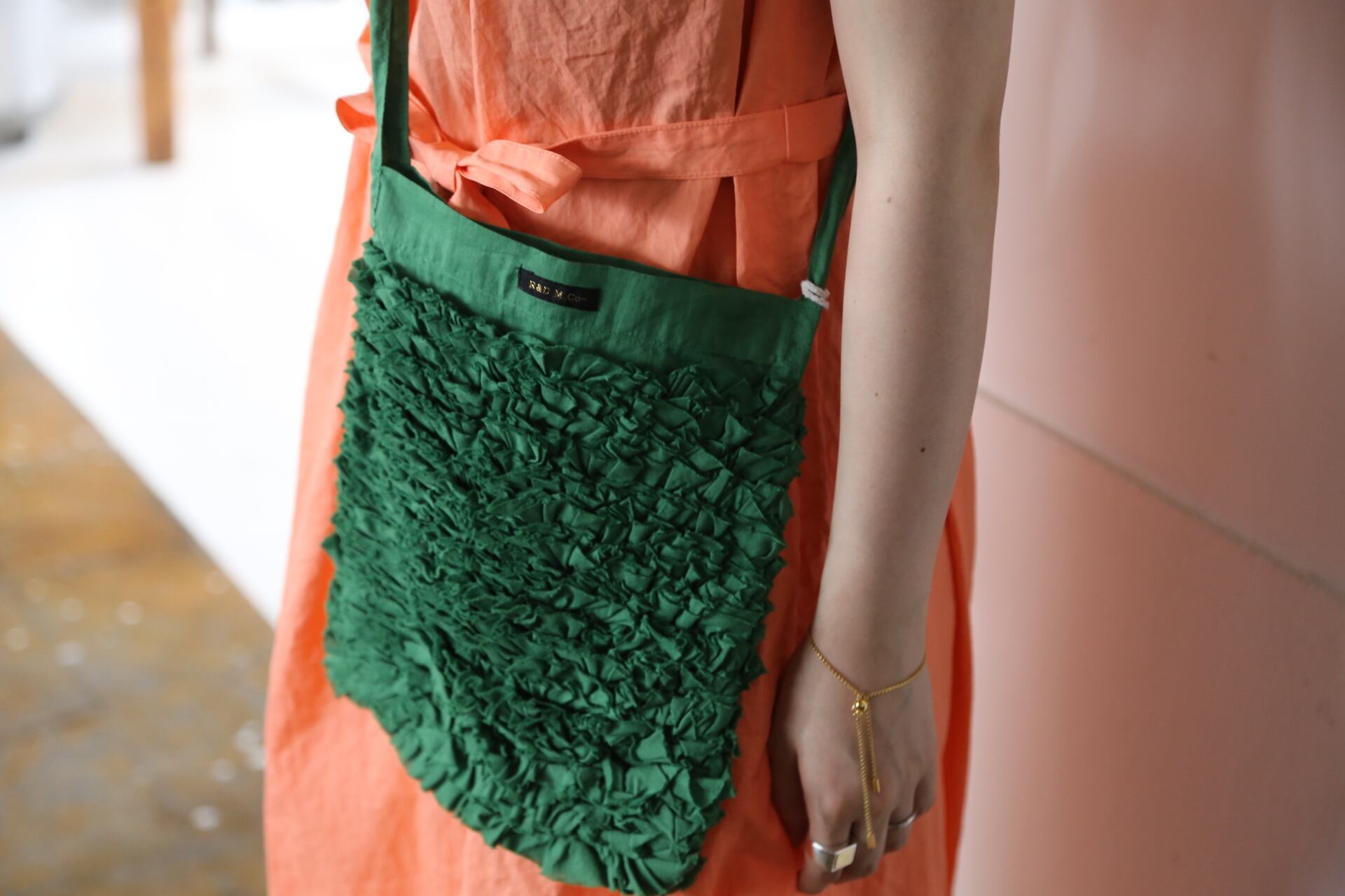 美しいフリルがアクセントのショルダーバッグ、
