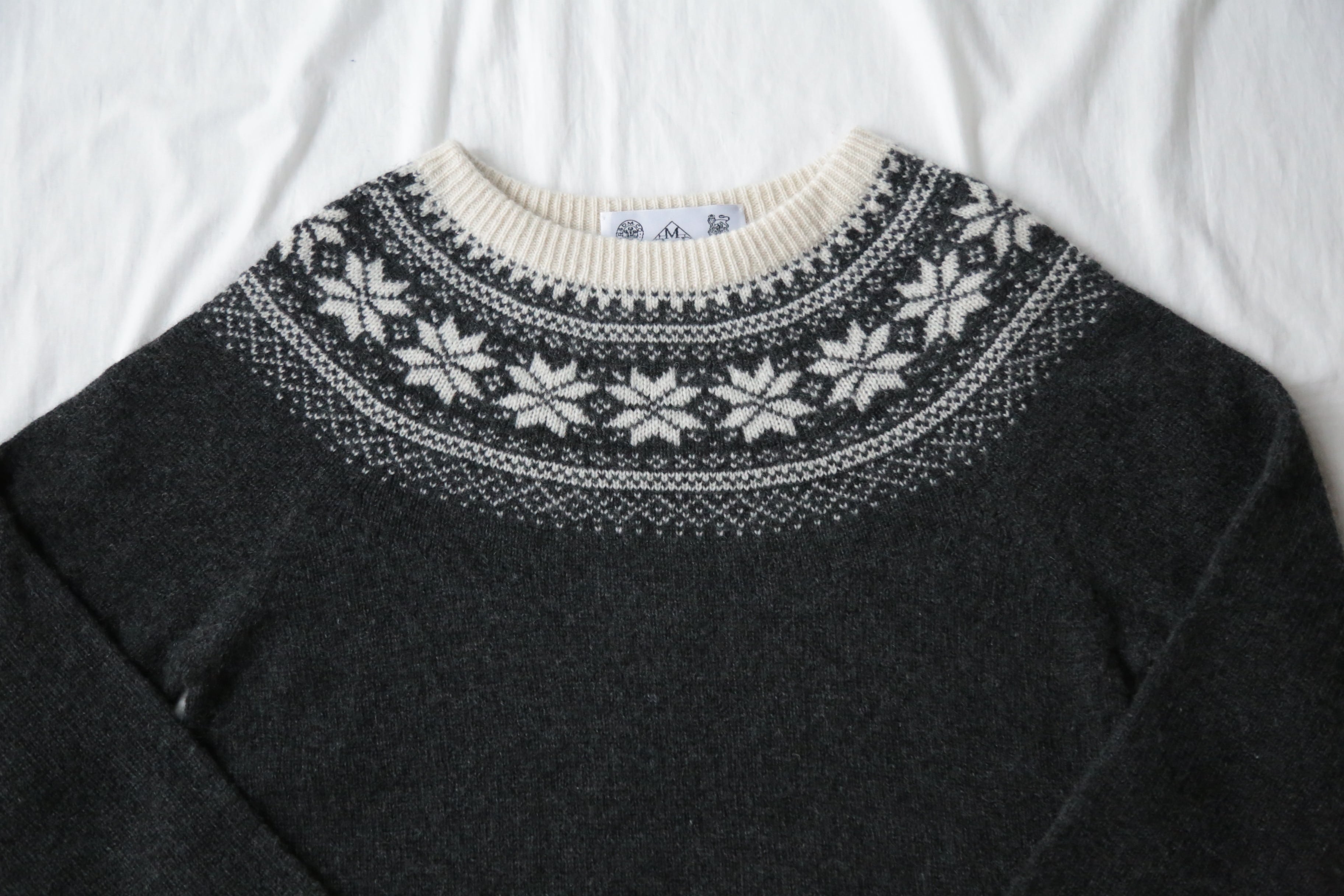 カシミヤを100%使用のノルディック柄セーター。