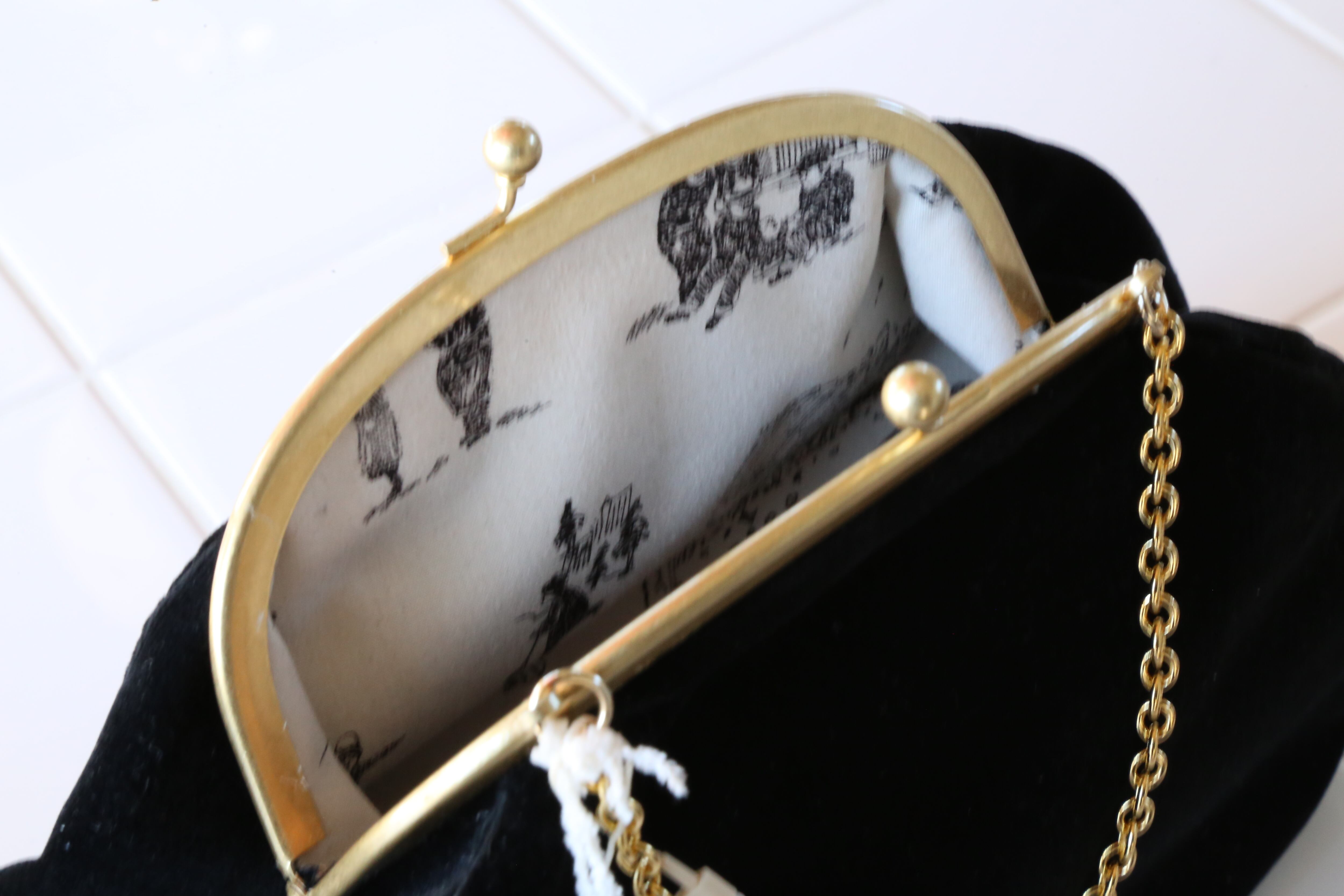 高級感のある表地のスウェード革が特徴的なフォーマルにも使えるがま口バッグ。